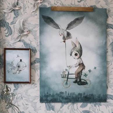 Mrs Mighettos super cute kids room poster Mini Bird Master! Attach Mini Bird Master on the wall and the poster will brighten up the kids' room in a whole new way! A kids poster also makes a great birthday present!