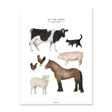 Teemu Järvi Illustrations' black and white posters of animals and birds are delightful in the living room. Julia Bäck's Harvest painting is suitable for the kitchen year-round, reminding you which vegetables are in season. Fashionell's animal posters teach children about animals and fish.