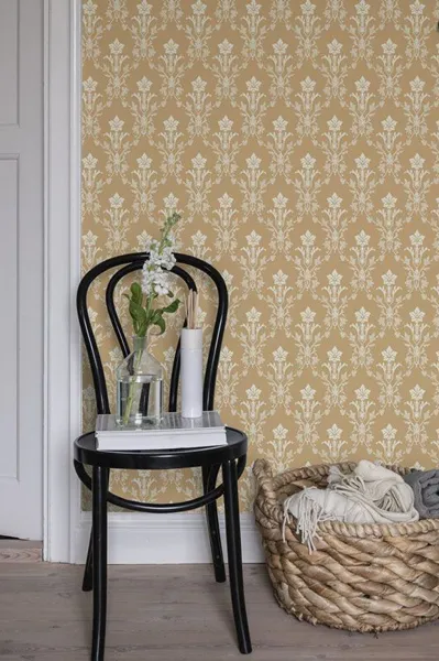![]() Gul Lillstjärna tapet passar utmärkt i både klassisk och skandinavisk inredning. |