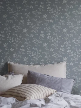 Småblommiga tapeten Skogsblomst är harmonisk och passar bra till exempel i sovrummet som blir härligt ombonat. Tre färgalternativ.
