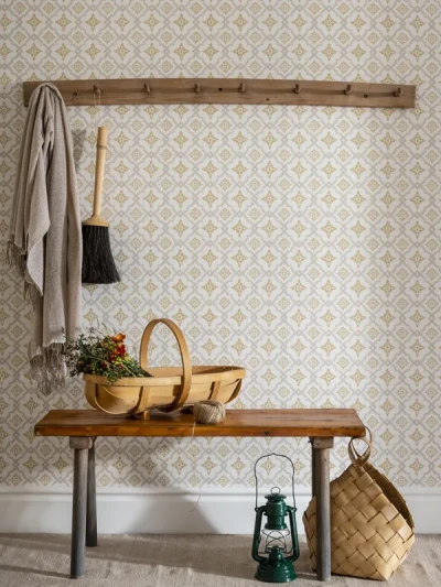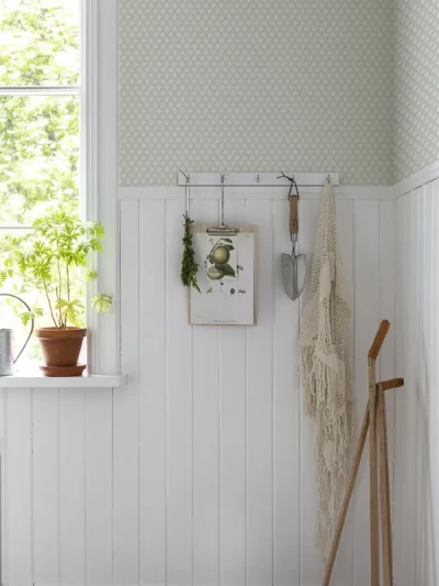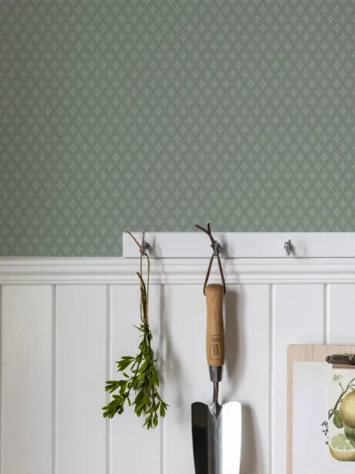 Lillstjärna har ett litet, rutigt mönster. Tapeten är en älskad klassiker som passar bra ihop med halvpanel och andra snickerier. Non woven-tapeten fås i fem olika färger.