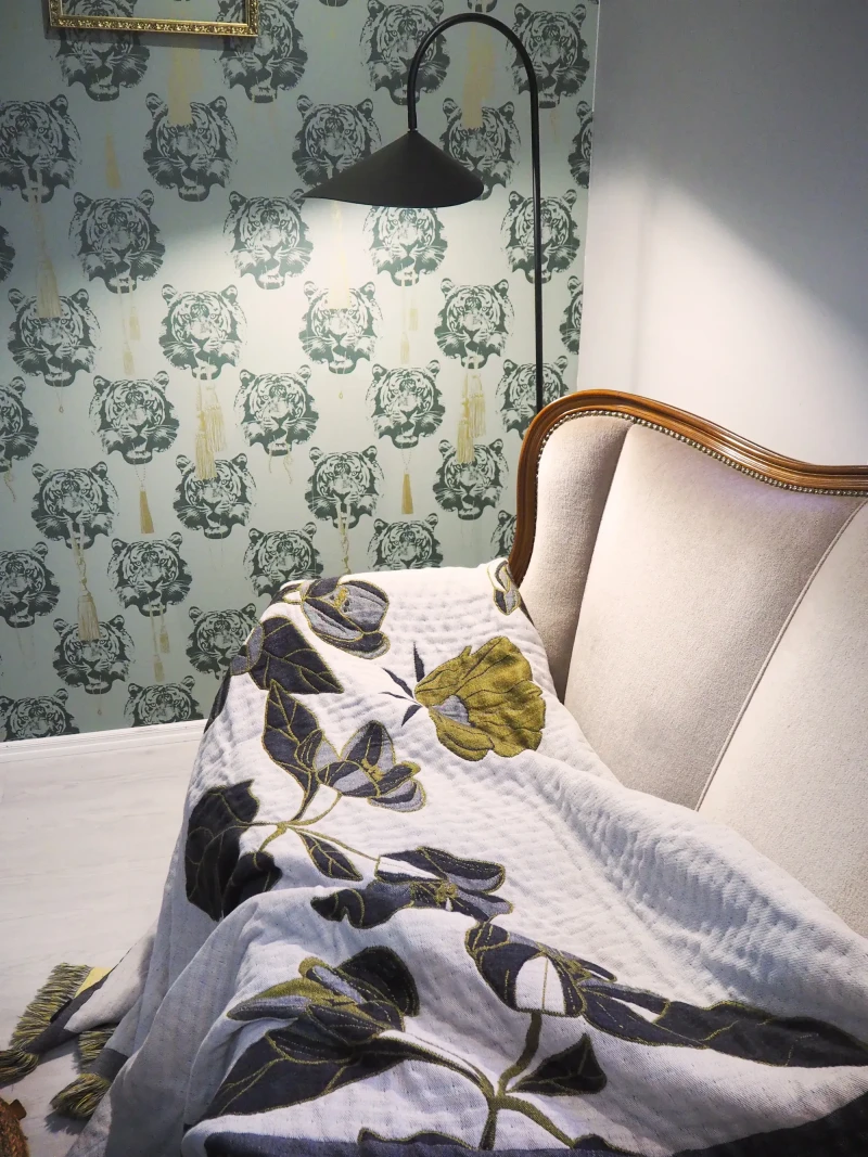 The warm throw blanket is woven using the jacquard technique. Its double-layer hollow structure forms air pockets, making the wool blanket especially warm.