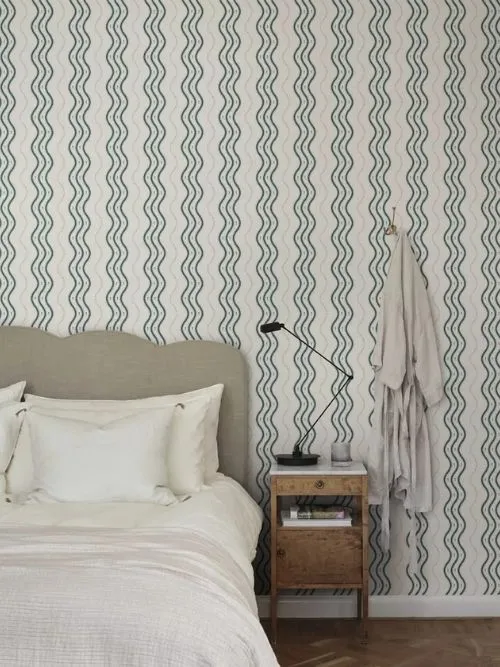 Striped wallpapers are making a comeback, but in a more subtle and refined way. Vertical stripes, softened grids and layered geometric patterns add rhythm without visual noise.