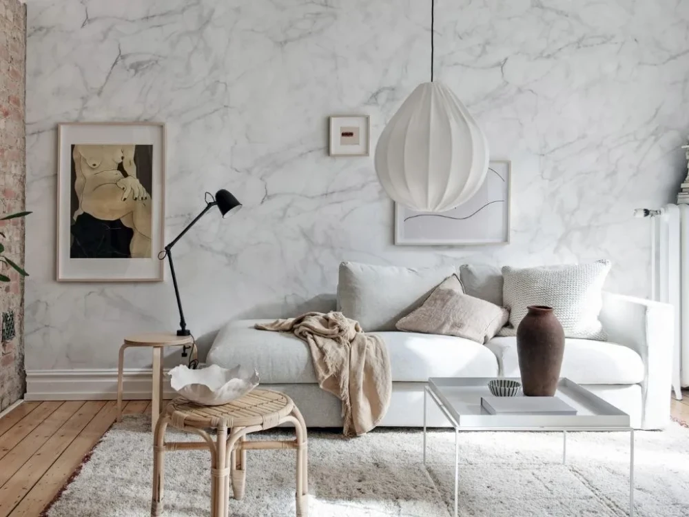 Wallpapers inspired by marble and stone are among the strongest interior trends of 2026. They bring depth and elegance to a space without feeling cold or heavy.