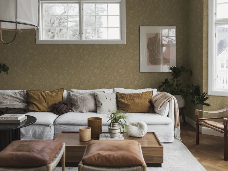 The wallpaper Nocturne has been a favorite for many in recent years. Now it comes in a yellow color, which can certainly give the beloved yellow Hip Rose some competition. We like Nocturne a bit extra because the pattern matching is so beautifully done; notice how difficult it is to find where the pattern repeating starts and ends. A skillfully made wallpaper, simply put!