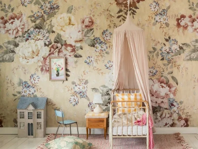 The floral wallpaper Blossom II is romantic and fits just as well in the children's room as in other bedrooms or the living room. It is also available with flowers in a smaller format in the wallpaper Blossom Mini. Both are available in yellow, blue-white, or beige.