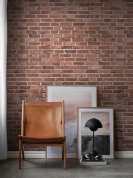 Realistic Brick Wall is one of several brick wallpapers in the Boråstapeter Studio. It is incredibly realistic and gives the room character. The other brick wallpapers are white White Brick Wall, Limestone Brick with sandstone and Brick Wall which is slightly darker red than Realistic Brick Wall.