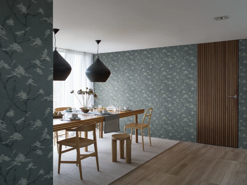 Wallpaper trends 2021 - blue and green wallpapers with nature-inspired patterns