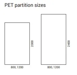 The acoustic screens are available in various sizes, both 80cm and 120cm wide and both 2m and 2.4m high. See more detailed sizes in the images.