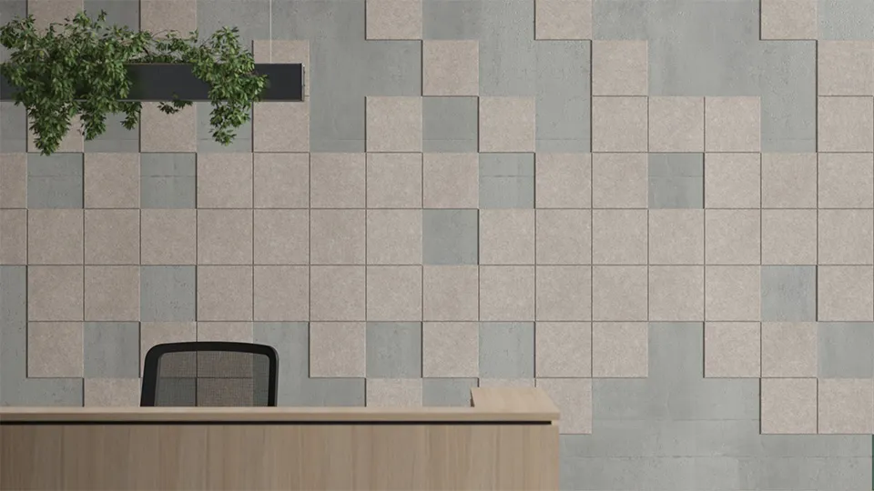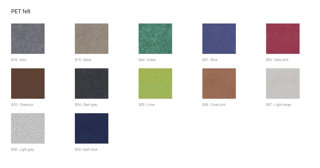 Manufactured with over 50% recycled plastic and part of the circular economy, these panels combine environmental responsibility with elegant design. PET felt, known for its excellent sound-absorbing capabilities, is also fire-resistant, easy to clean, and offers a wool-like feel, making them ideal for modern offices that prioritize both aesthetics and functionality.