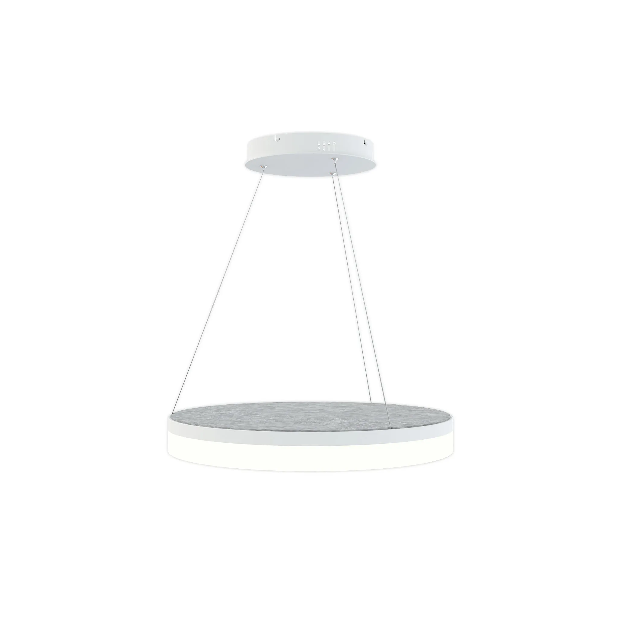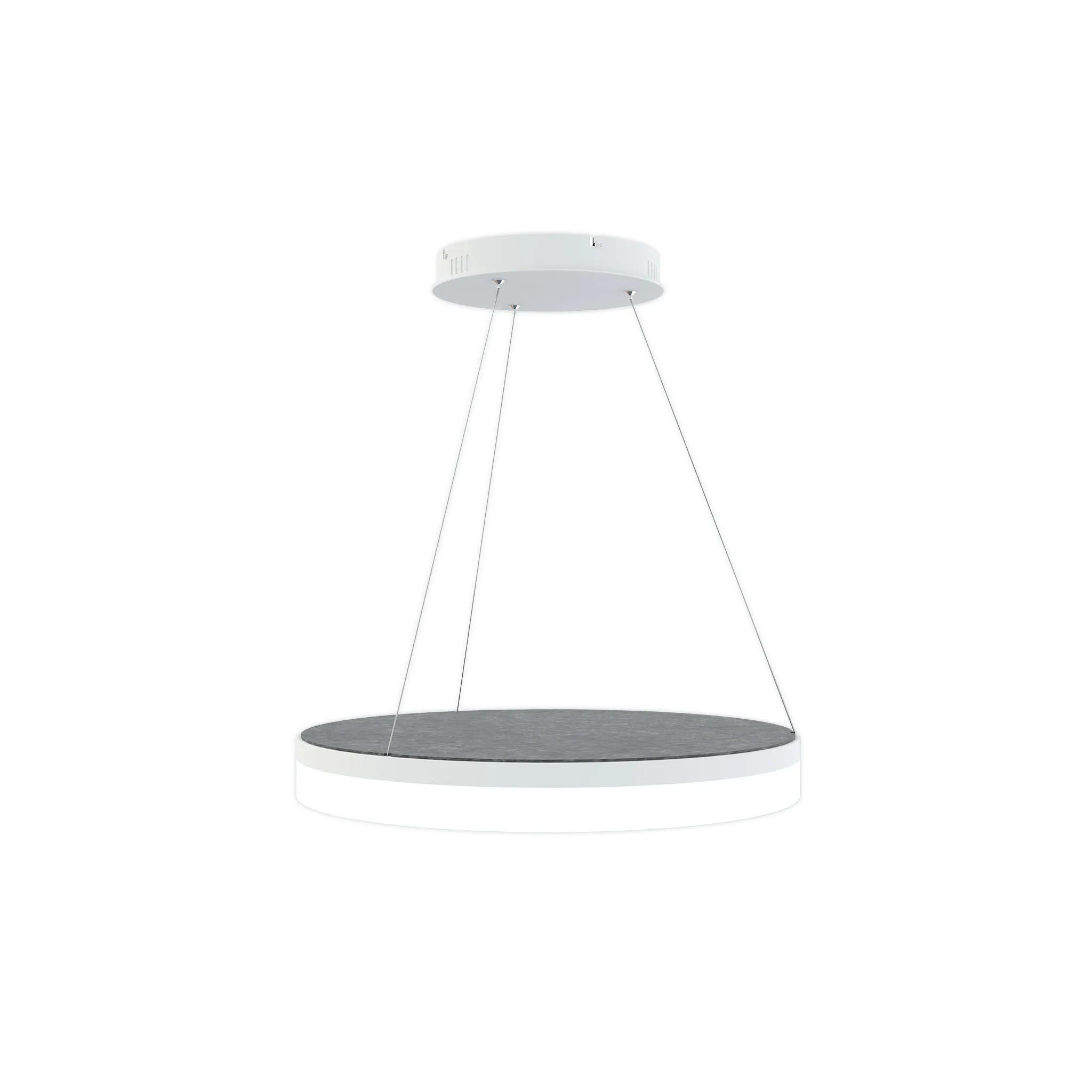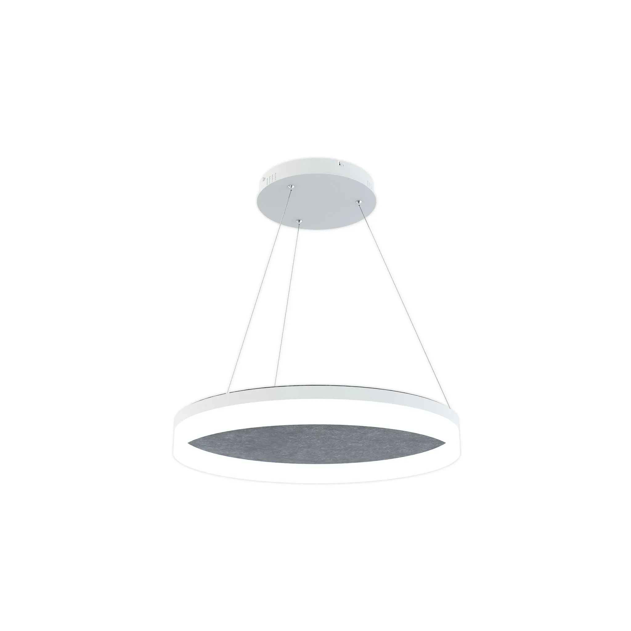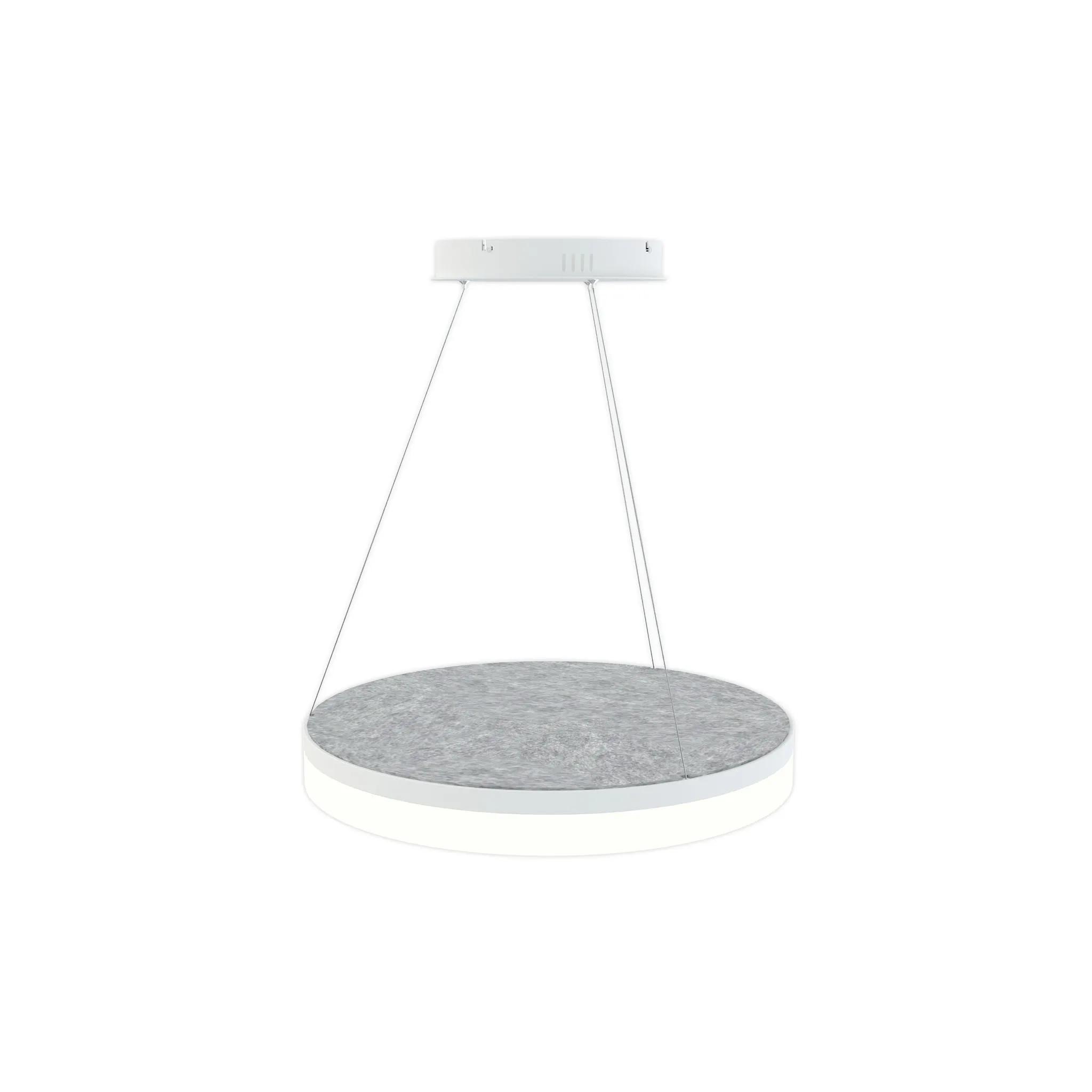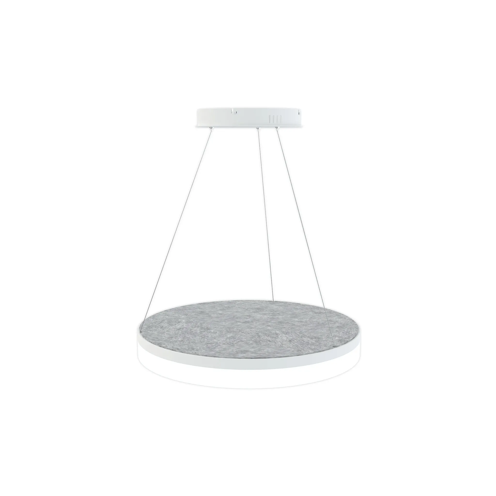 The Acoustic Lamp Acoustic Circulo is modern and stylish. The lamp has good lighting, is simple yet elegant, and absorbs sound. Acoustic Circulo fits well in public spaces but also in private homes. The round LED lamp is perfect, for example, above the meeting table, in the auditorium, or at home above the dining table where the ceiling height is high. The acoustic lamp is made of felt, which has been shown in laboratory tests to have good sound-absorbing effects. The dimmable lamp is made in Finland and designed by Karl-Erik Grönlund.