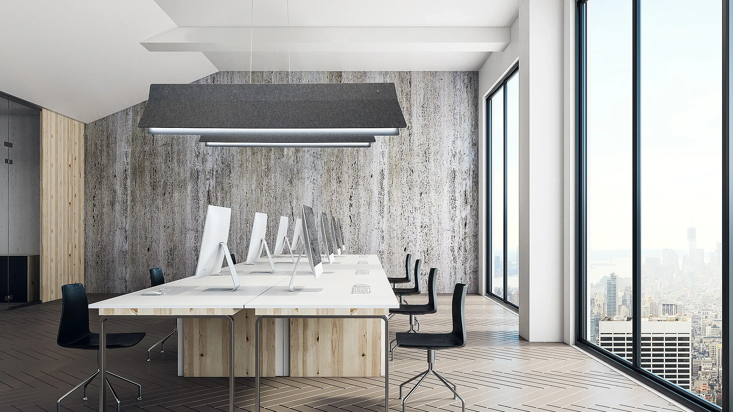 The Acoustic Lamp Acoustic Line fits both in public environments and private homes. The LED lamp is perfect, for example, above the meeting table, in the auditorium, or above the dining table at home where the ceiling height is high. The acoustic lamp is made of felt, which in laboratory tests has shown to have good sound-dampening effect. The dimmable lamp is manufactured in Finland and designed by Karl-Erik Grönlund.