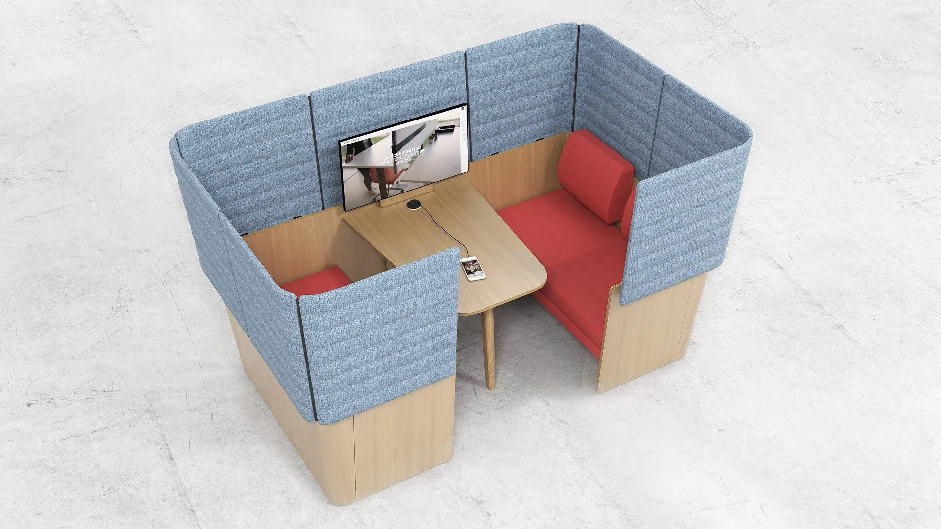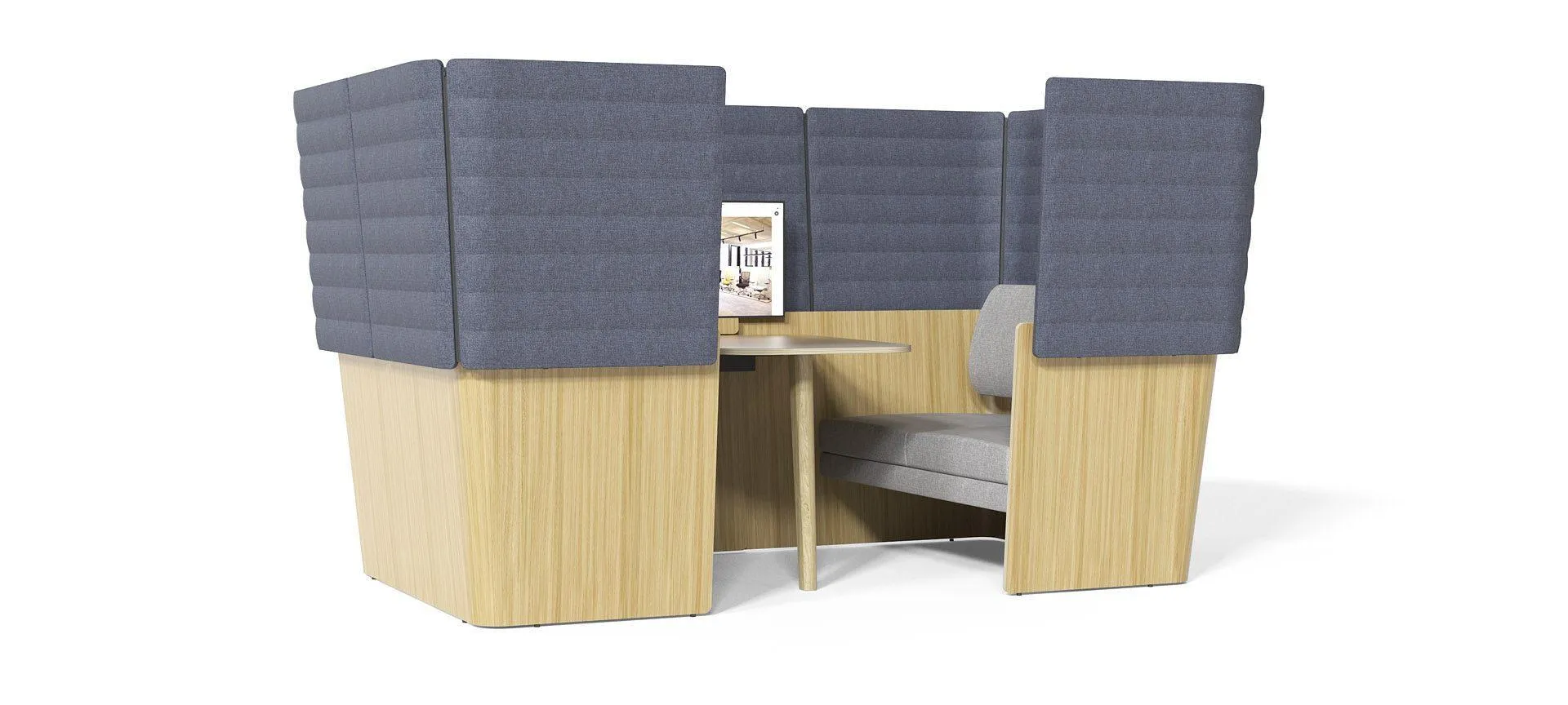 With ARCIPELAGO Wood, any place becomes an opportunity to work efficiently and privately. The high panels function as a screen against background noise, while the comfortable seating area offers a private and relaxed atmosphere.