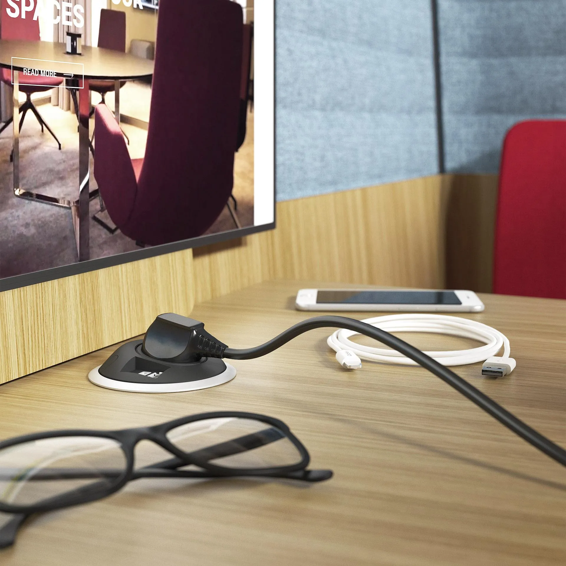 For maximum functionality and flexibility, the tables have built-in power outlets with type A and C USB connectors, and there is also the option to mount a screen for presentations.