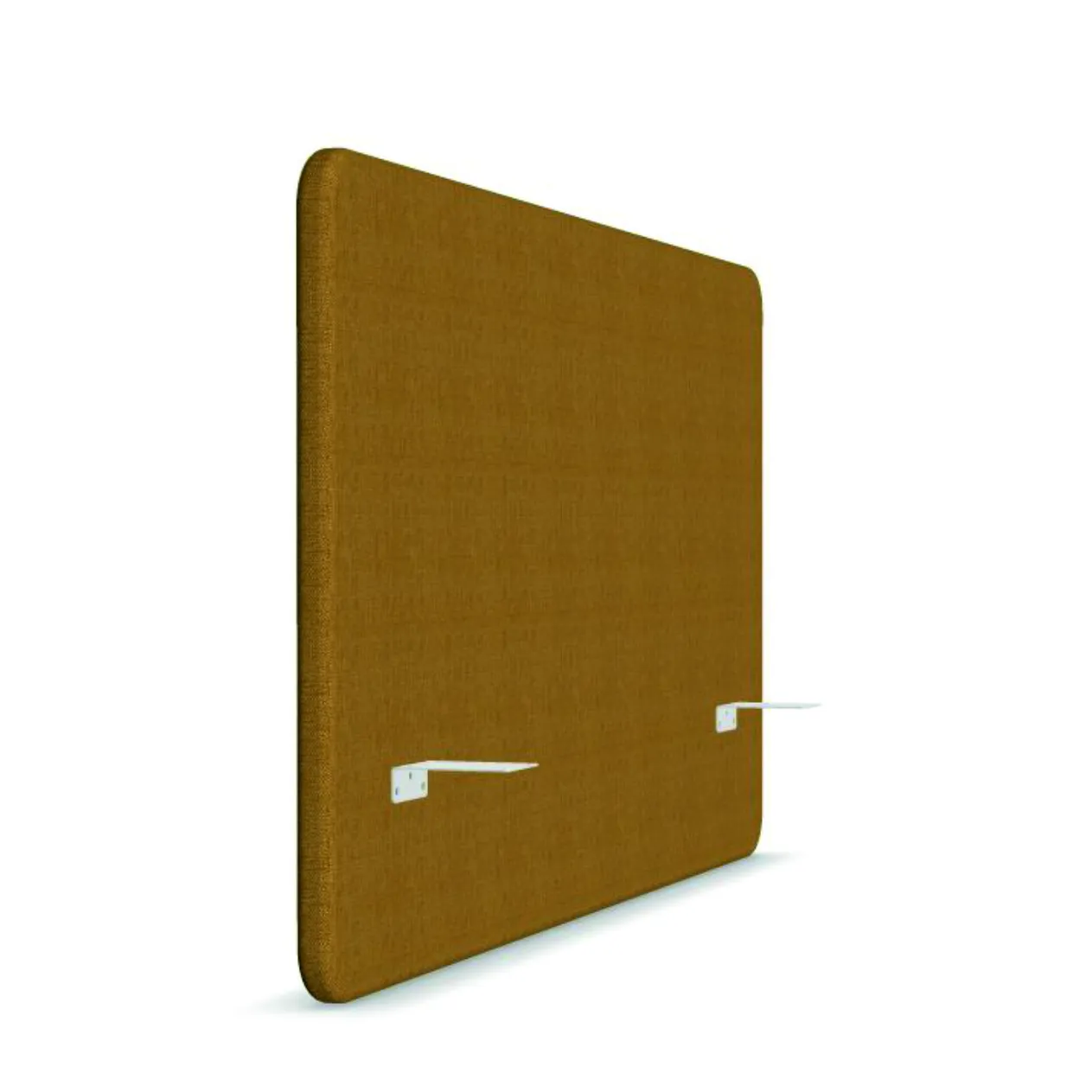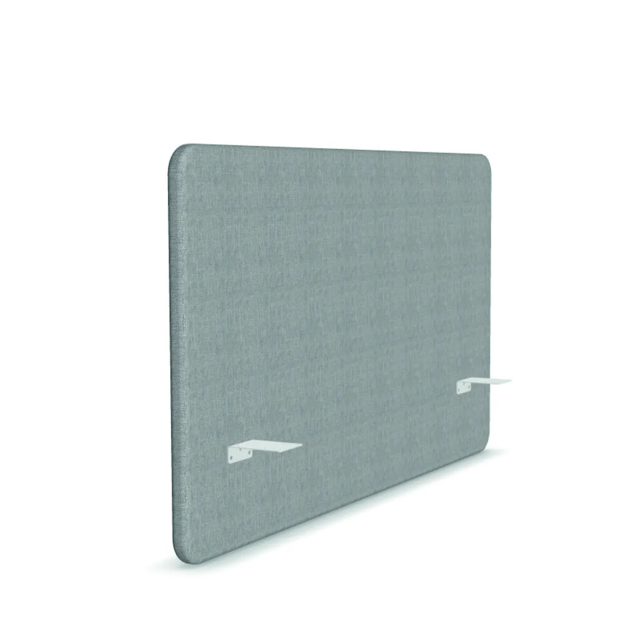 Desk 760 Small is an acoustic screen suitable for 140 cm wide desks. Combine with One Small or another desk of the same width. The fabric acoustic screen dampens sound, partitions the workspace, and works well as a notice board. The screen is attached to the desk with three angle irons included. The screen is 530 cm above the desk and approximately 18 cm below the desk (to hide cables).