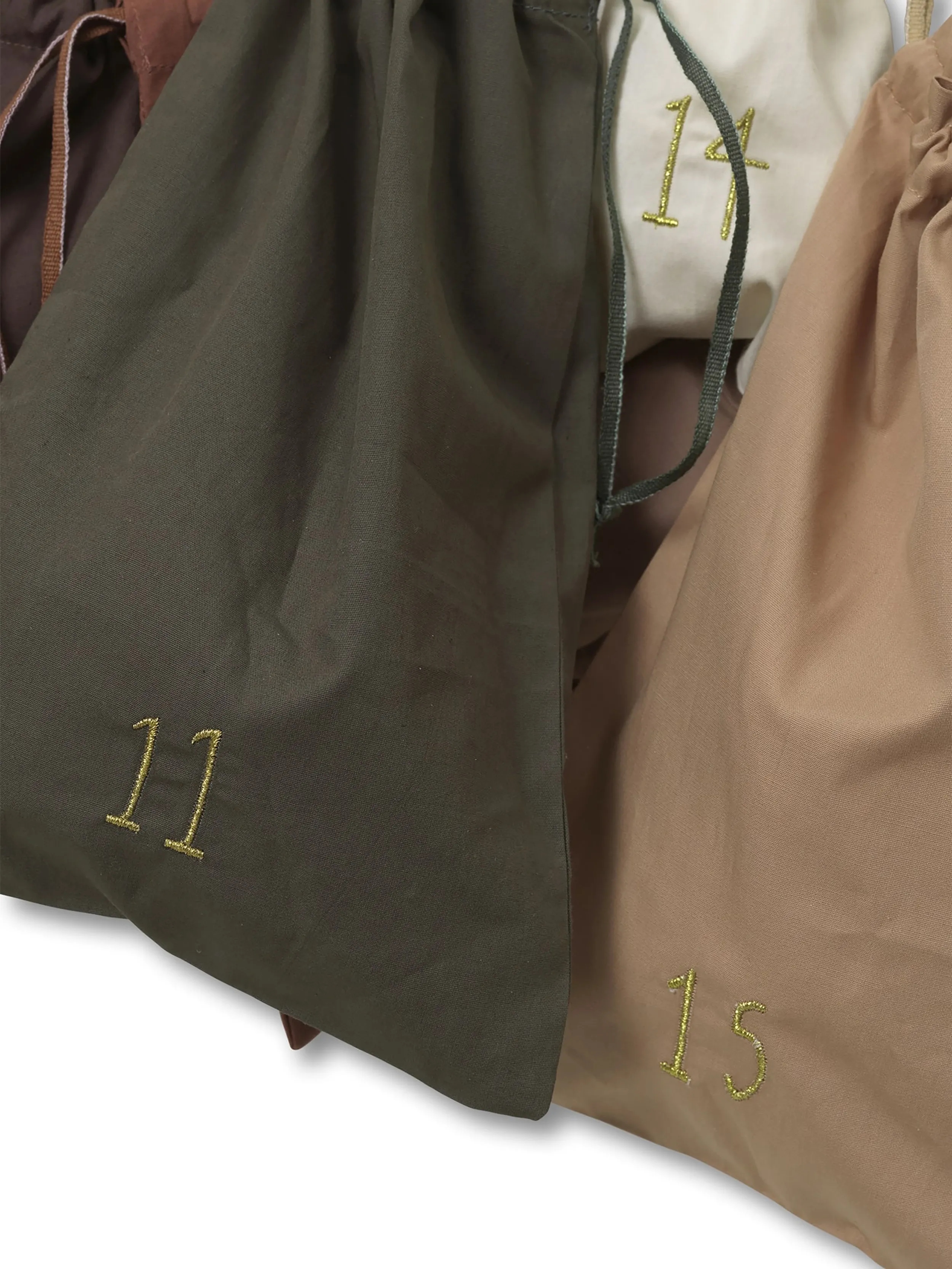 This modern Christmas Countdown advent calendar is the perfect way to elevate the Christmas spirit in any family with children. The calendar includes 24 stylish bags made from GOTS-certified cotton and numbered from 1 to 24.
