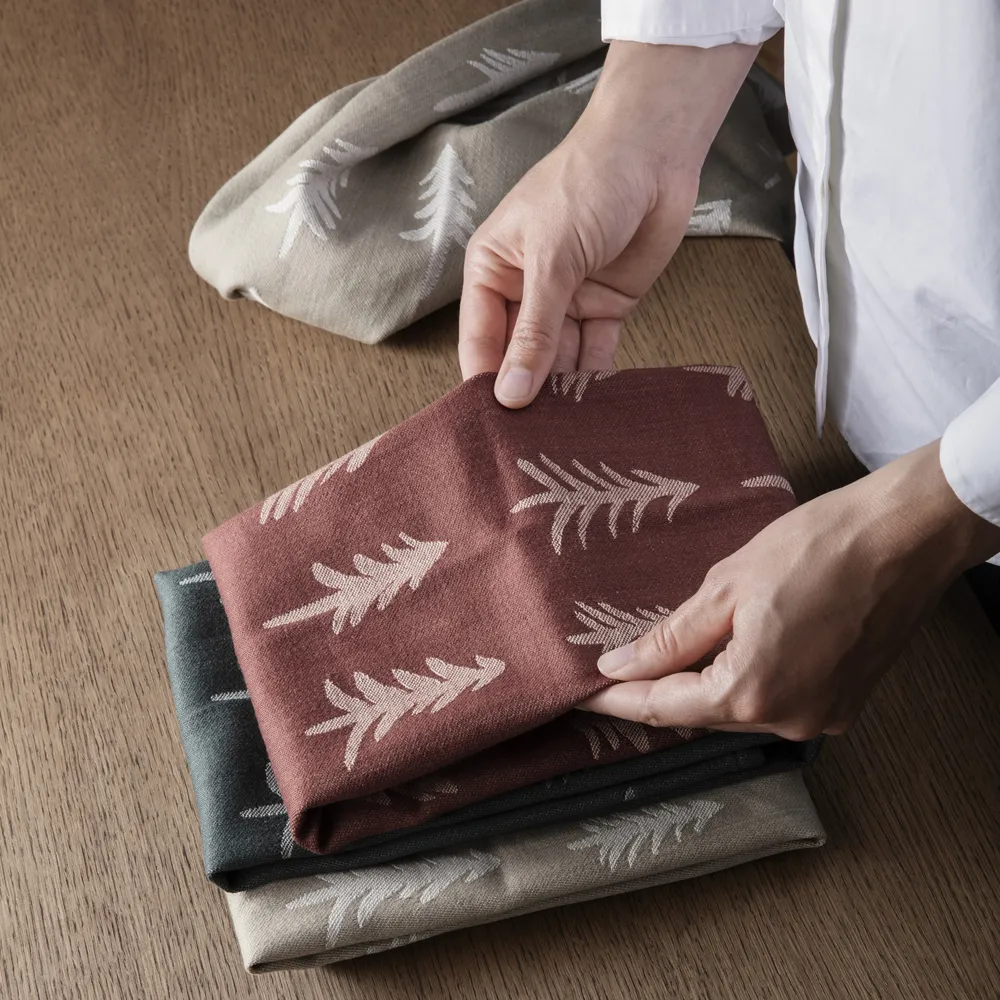 Christmas Tea Towel is a kitchen towel with a Christmas motif. The Christmas trees on the kitchen towel spread holiday cheer. Three color options.
