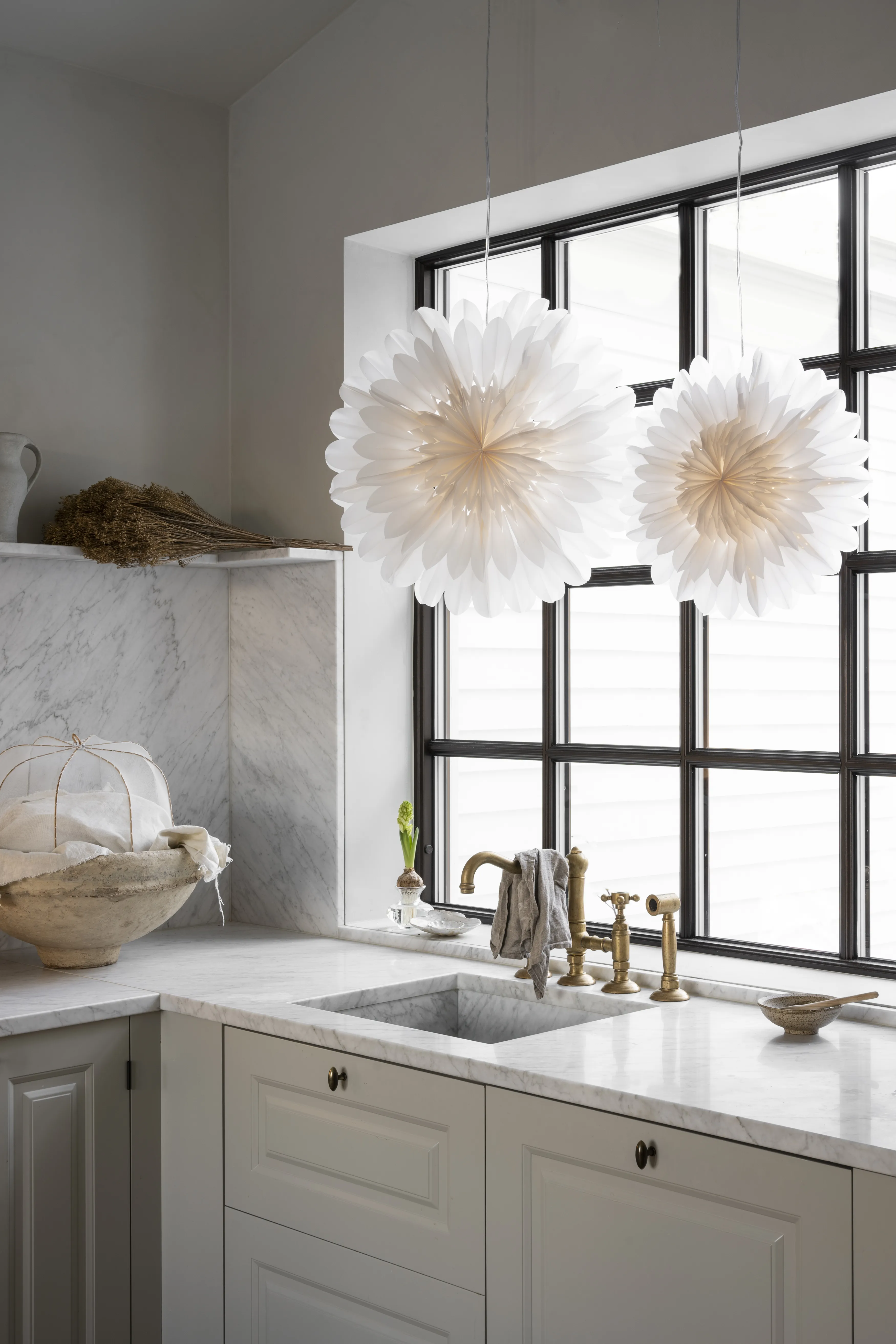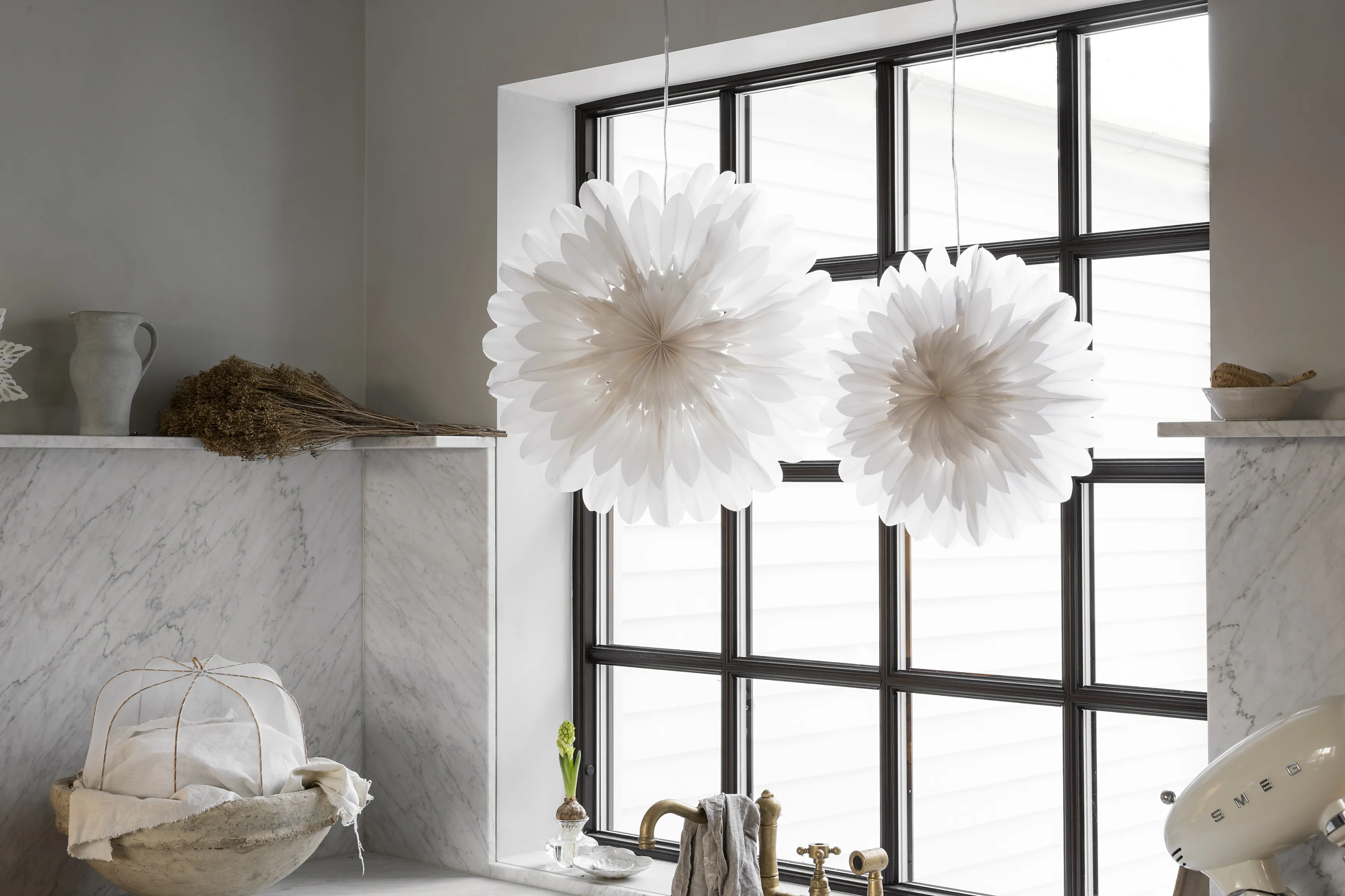 Watt & Vekes beautiful Christmas star Lotus is an all-white, stylish Christmas star made of paper. The star is handmade. The soft star in thin paper shines like a flower and is suitable both in windows and in front of a wall. The Christmas star comes in a nice storage box so you can save your favorite year after year.