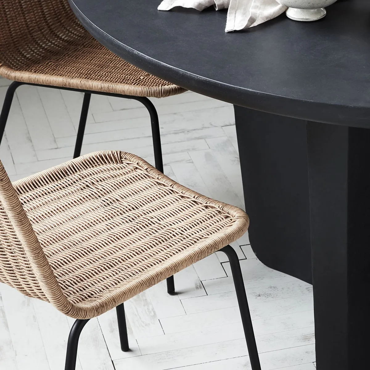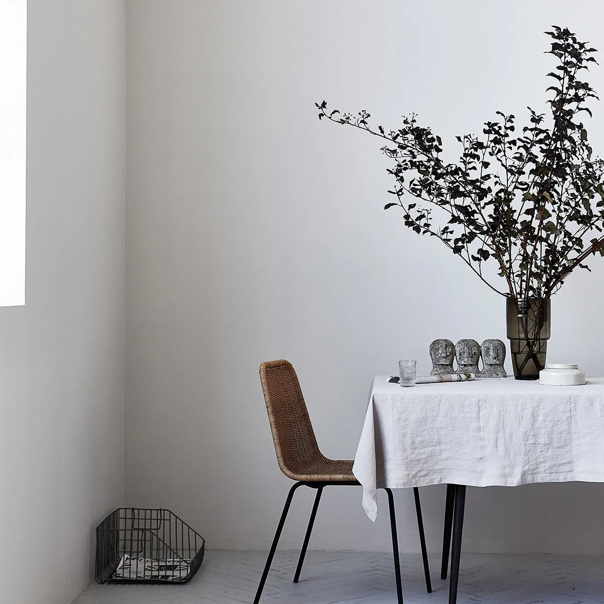 The Hapur rattan chair from House Doctor is elegant and radiates warmth. The braided material matches the dark legs and the color is perfect for Scandinavian decor.