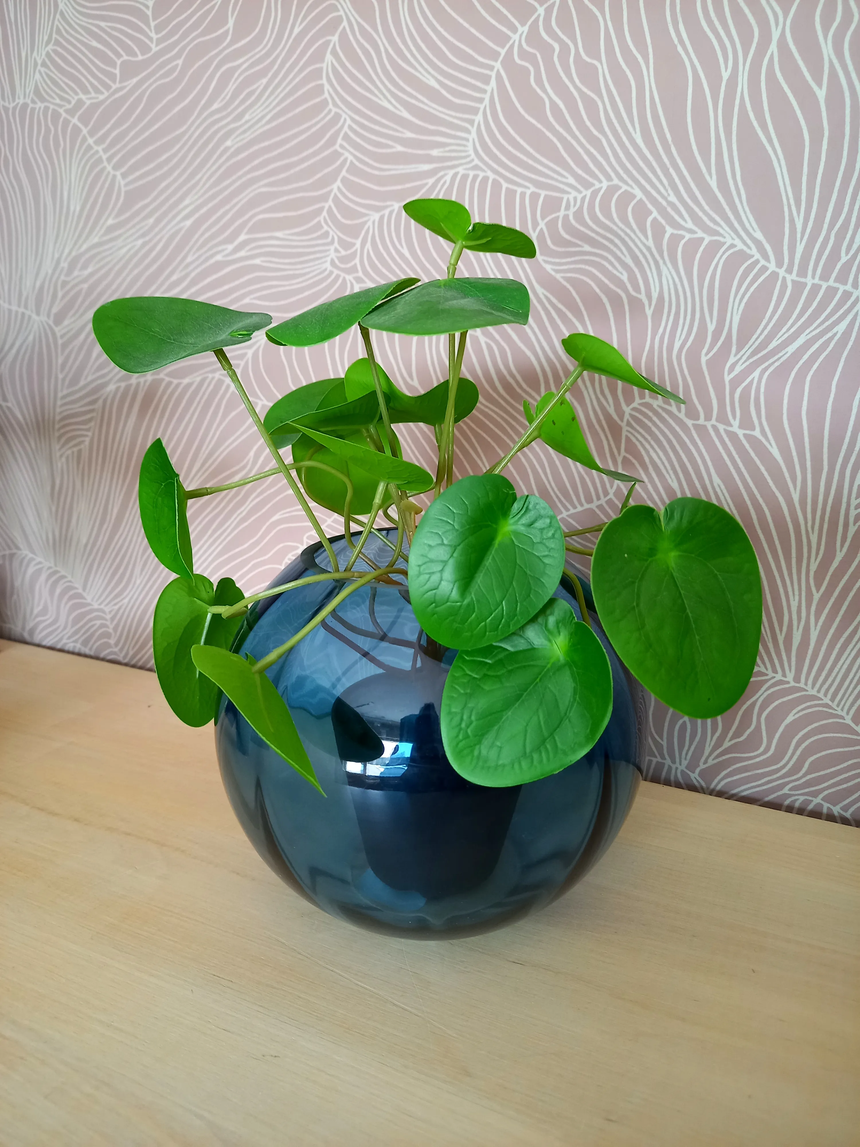 The glass vase Abas in a trendy blue color has a nice round shape. A fine vase for a small bouquet or as a stylish decorative detail on its own. The vase is spray-painted.