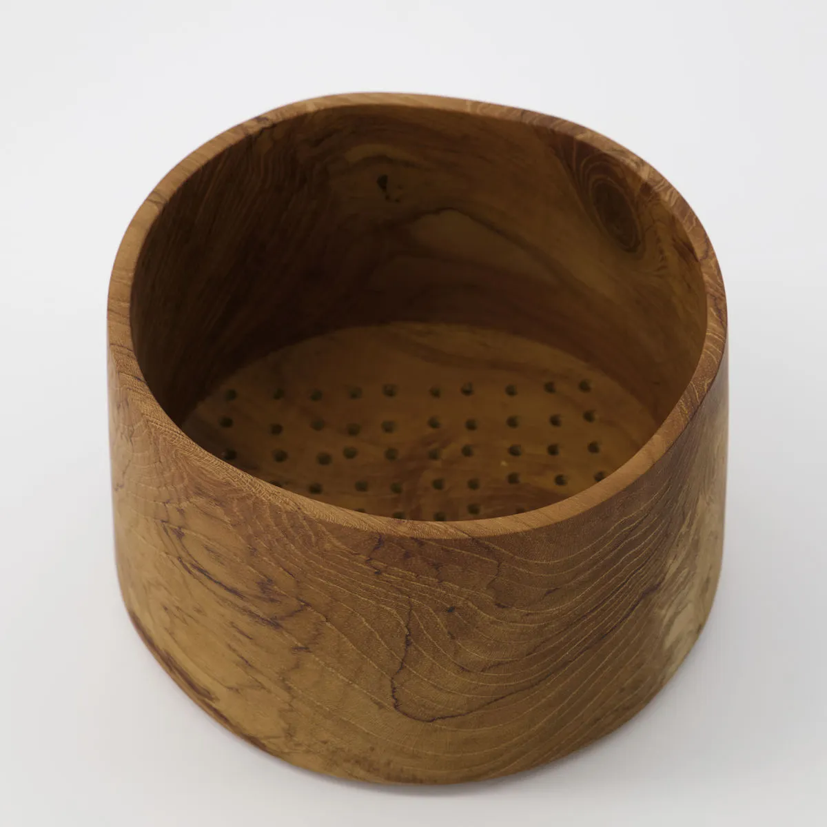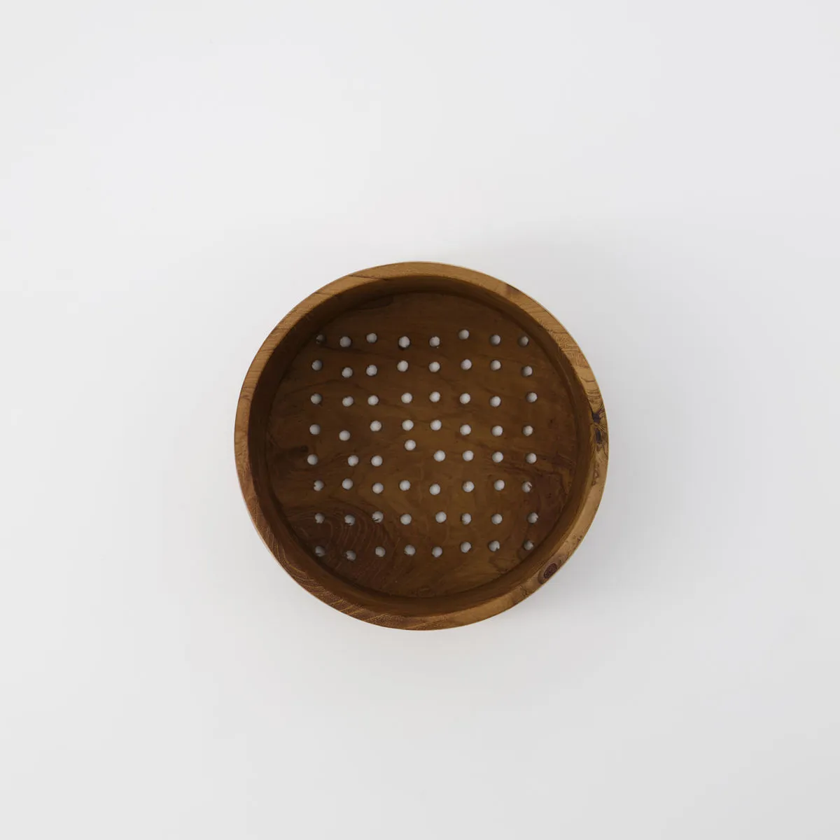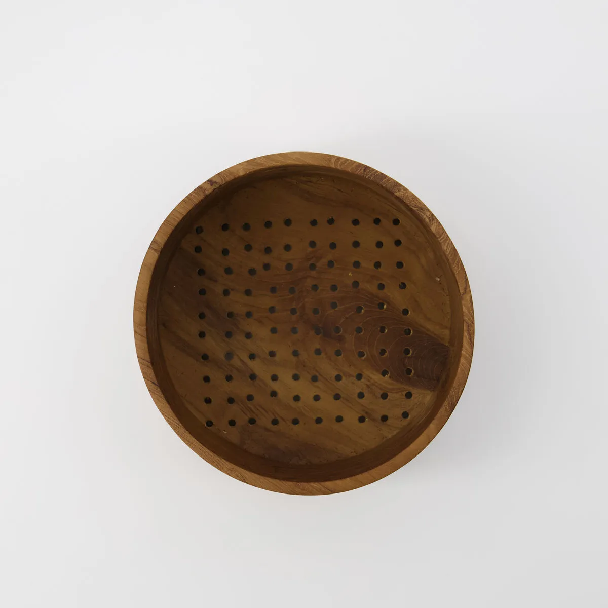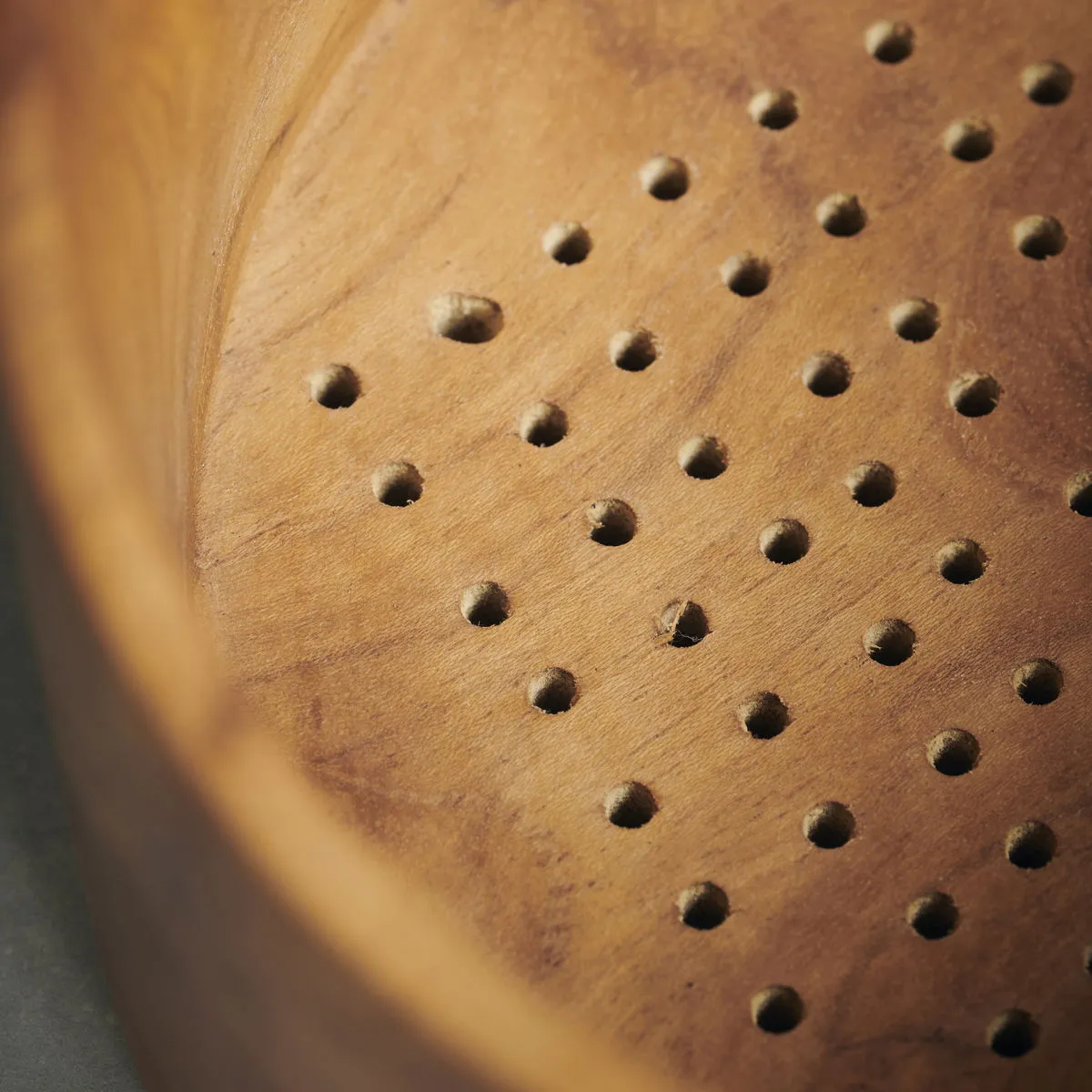 The modern wooden bowl Berry Bowl in teak is delightfully uneven and adds a softness to the kitchen in contrast to steel. The bowl has ventilation holes in the bottom, allowing you to store onions, garlic, or berries in it without it being too tight. The bowl can also be used for storing small items in the hallway, bathroom, living room, or bedroom. Three size options.