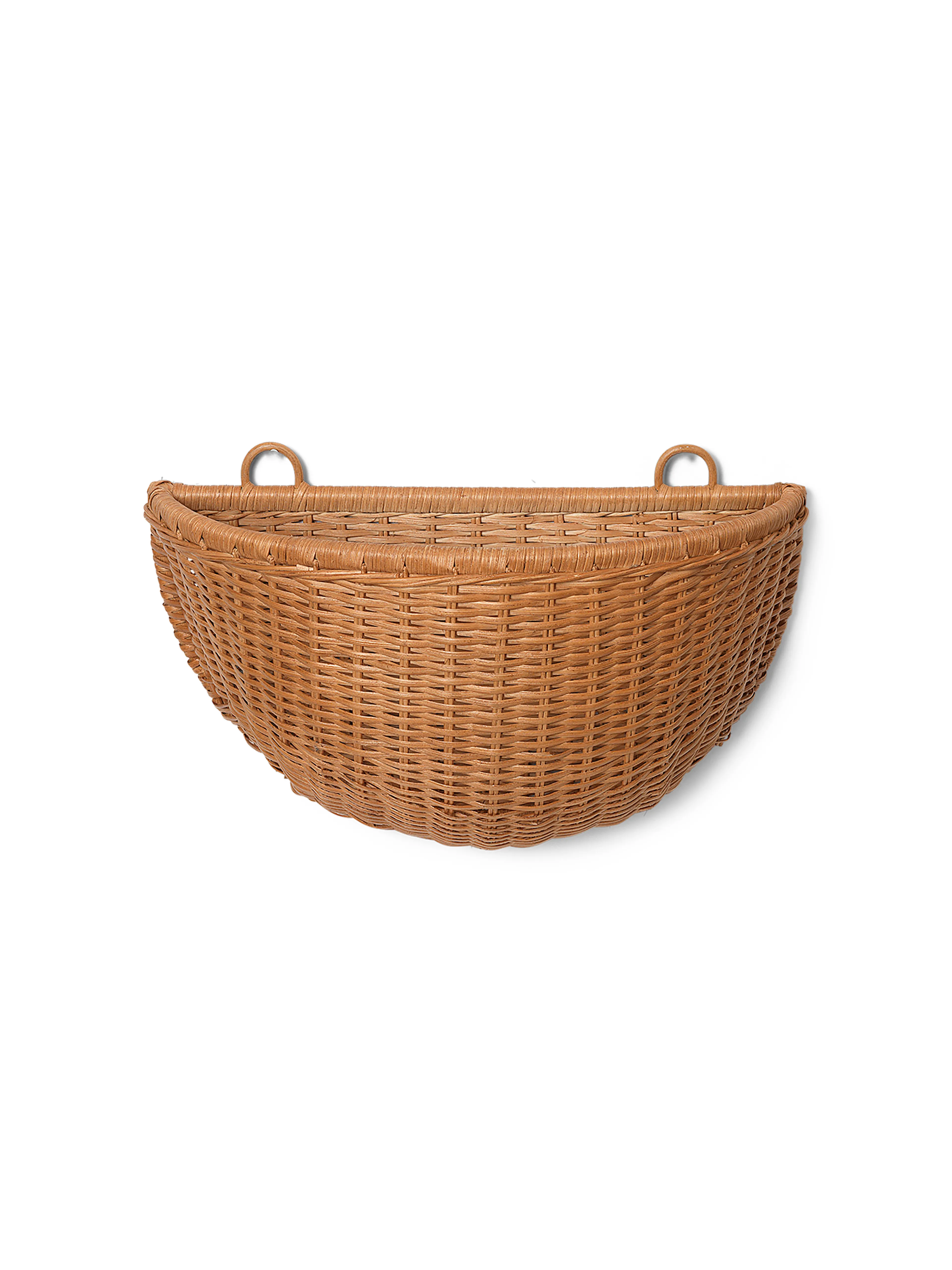 The wall-mounted rattan baskets Braided Wall Pockets from Ferm Living are natural and decorative. Store scarves and shawls in them in the hallway or bedroom, toys in the children's room, or small towels in the bathroom.