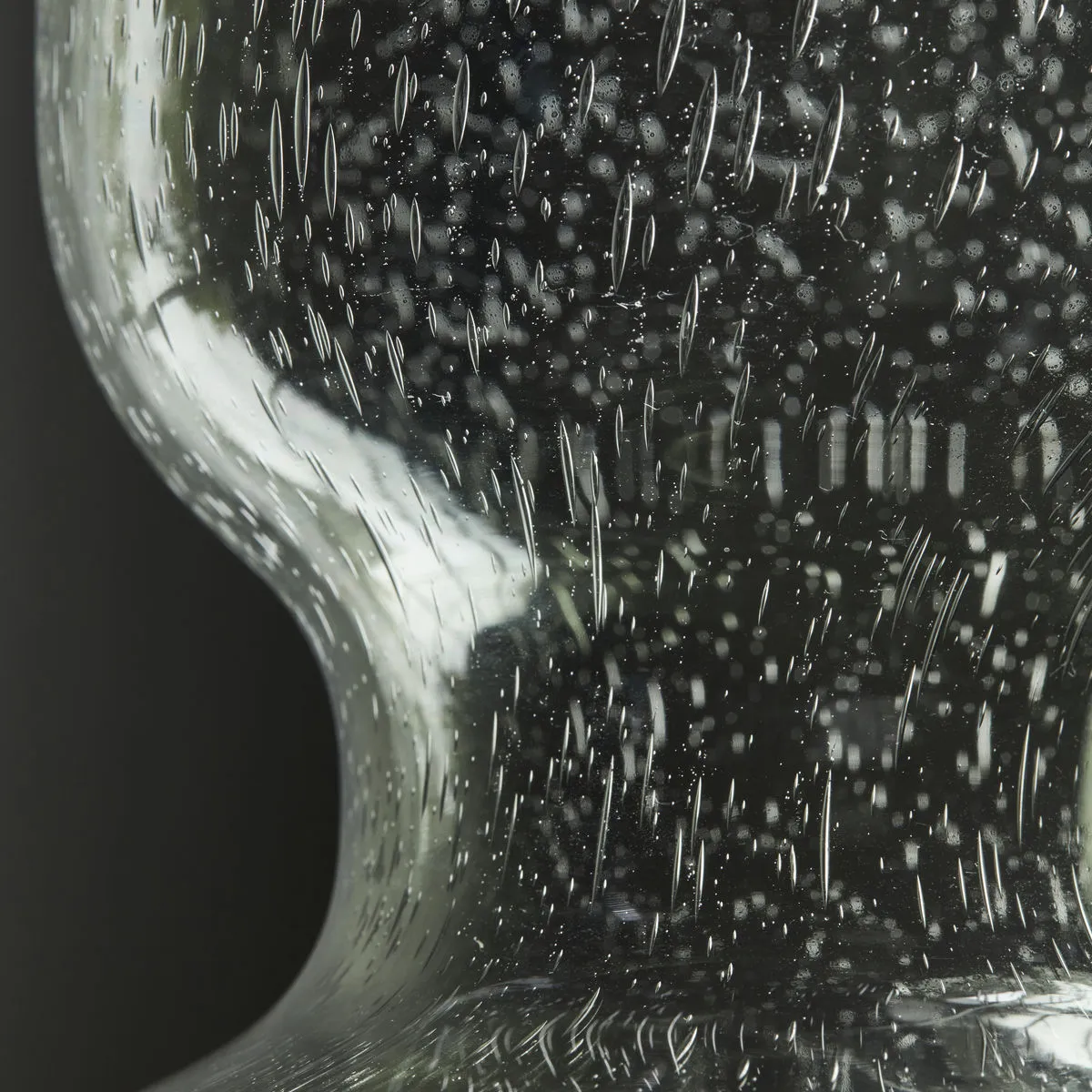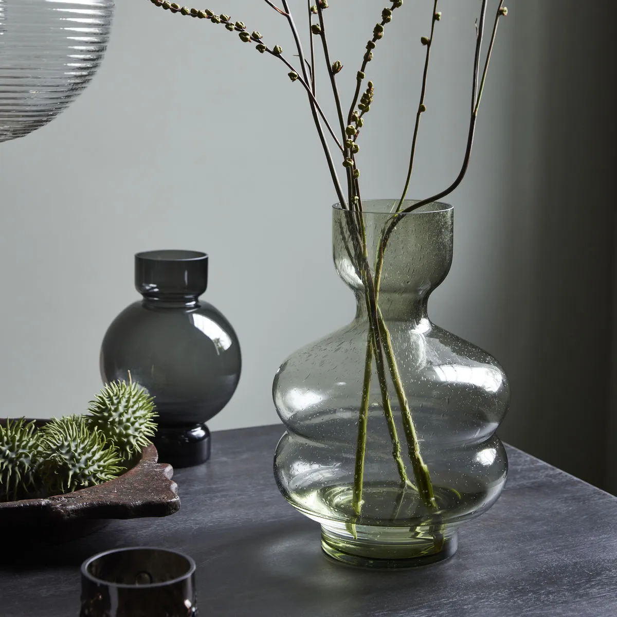 House Doctor's glass vase Organi with rounded shapes wants to be in the spotlight. The vase is elegant and exciting with bubbles in the glass. Use as a focal point on the table or as part of a group of beautiful decor items.