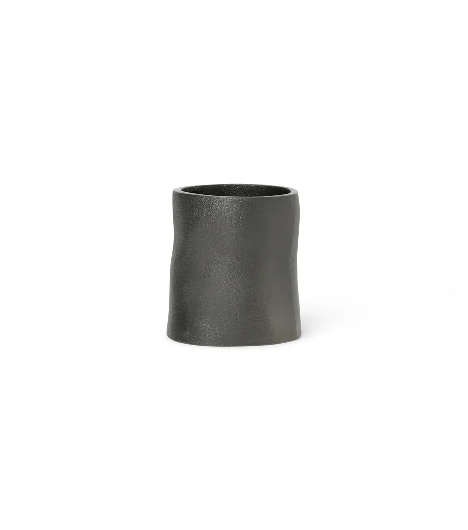 The Yama cup in black, recycled aluminum is practical and stylish to look at. Use for pens in the home office, makeup in the bathroom, or cutlery in the kitchen.