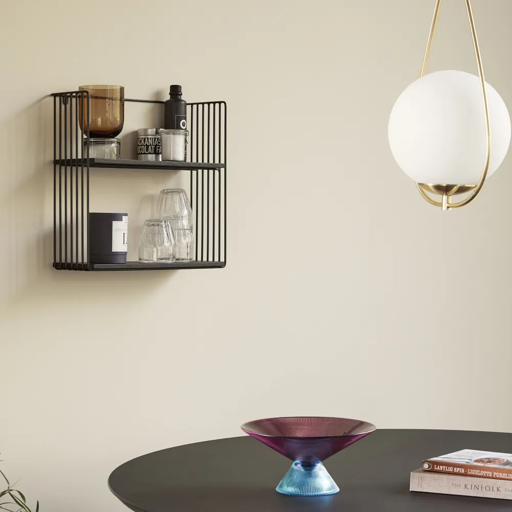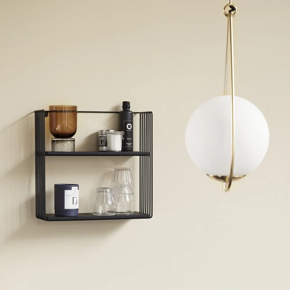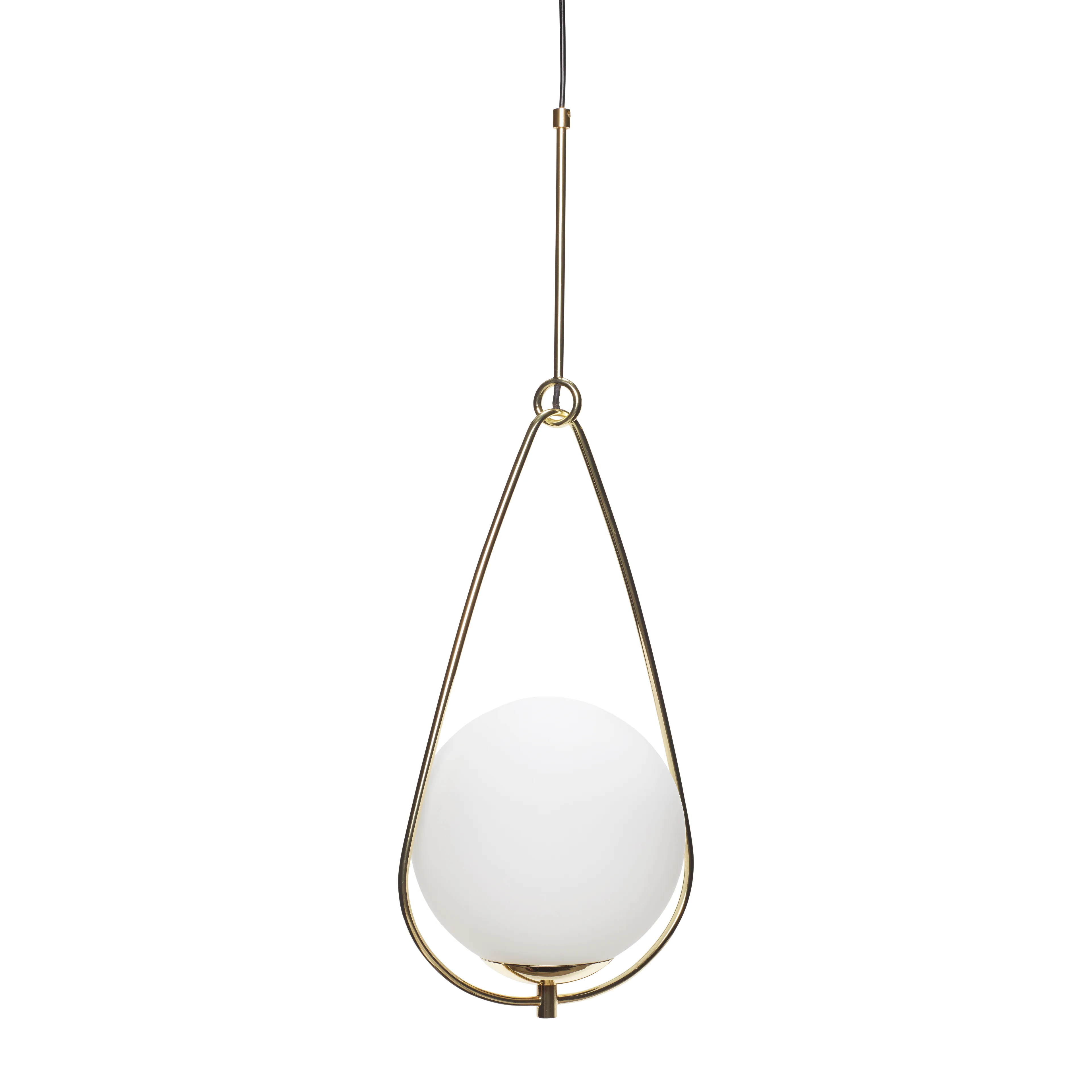 The ceiling lamp Above in white glass and brass is modern and stylish, a nice ceiling lamp for the living room or dining room.