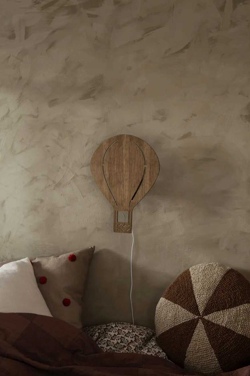 Air Balloon night lamp designed as a hot air balloon for children's room from Ferm Living in painted plywood, suitable to place above the bed in the children's room.