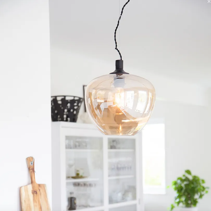 Bellissimo ceiling lamp is a lovely decorative element! The ceiling lamp has a very stylish glass shade, and the cord is covered with black textile.