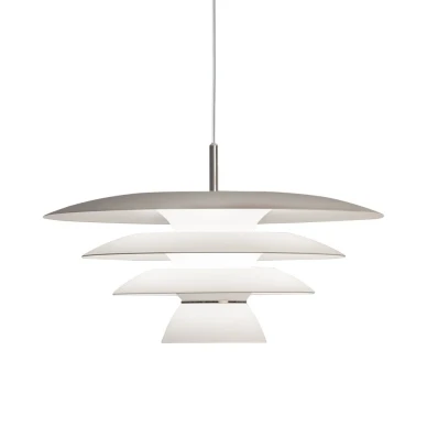 The Epsilon pendant lamp with a lift is a classic with three shades. The lamp can be raised and lowered, and it creates a cozy atmosphere without glare. The light is nicely distributed between the shades and enhances the mood in any room. Perfect above the dining table or coffee table. Decorative rings in both matte brass and chrome are included, so you can choose the one that suits best.