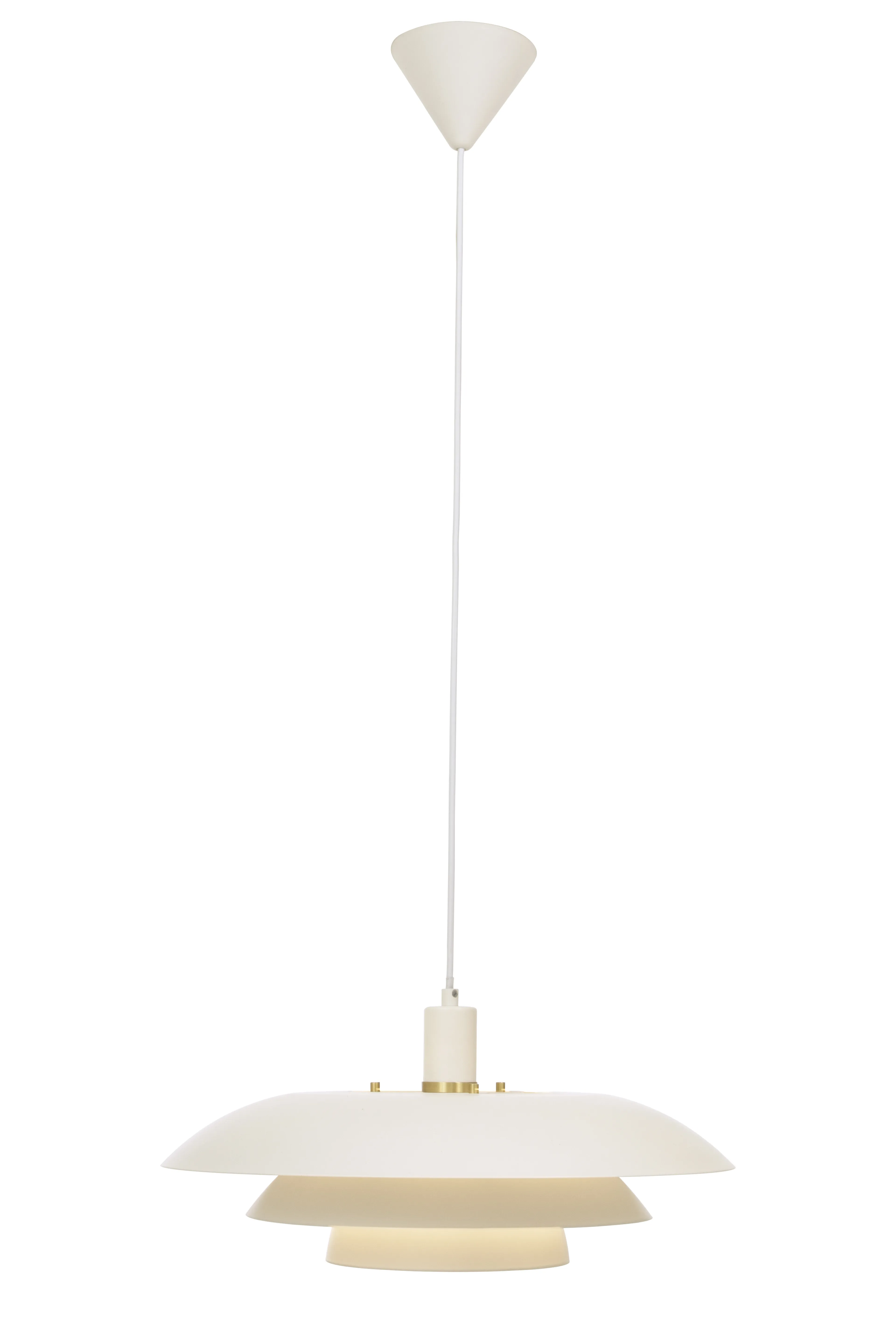 The Epsilon ceiling lamp is a classic with three shades. It spreads a pleasant ambiance without glare. The light is evenly distributed between the shades and enhances the atmosphere in any room. Perfect above a dining table or coffee table. Decorative rings in both matte brass and chrome are included, so you can choose the one that suits best.