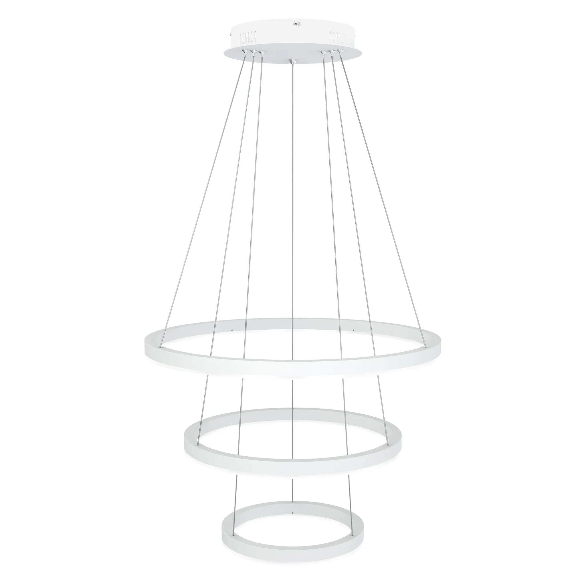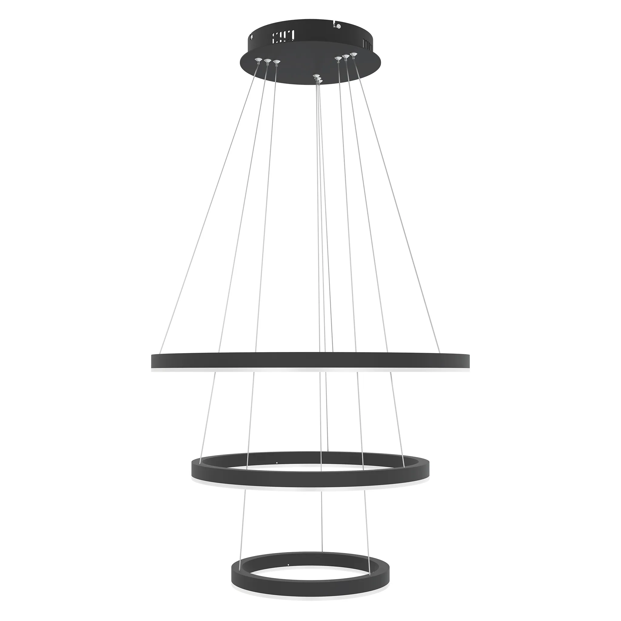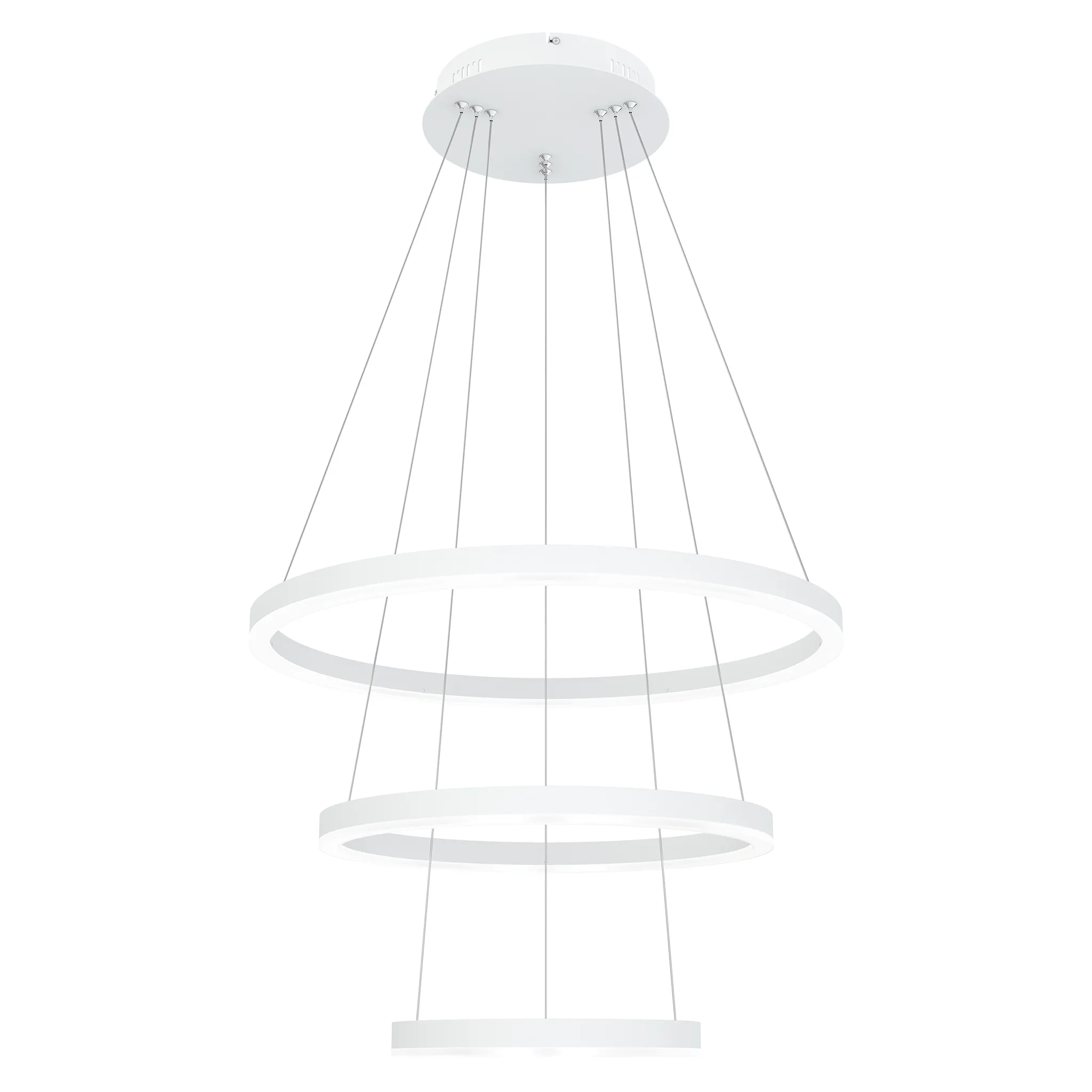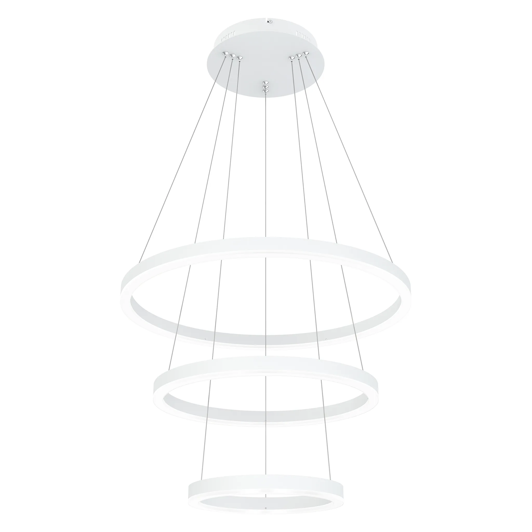 The ceiling lamp Layer 3 is modern and sleek with three light circles of different sizes. The lamp is simple yet extravagant. Layer 3 fits well in public spaces but also in private homes. The round LED lamp is perfect, for example, above the conference table, in the auditorium, or at home above the dining table where the ceiling height is high. The ceiling lamp is dimmable. The height and inclination of the light rings can be adjusted.