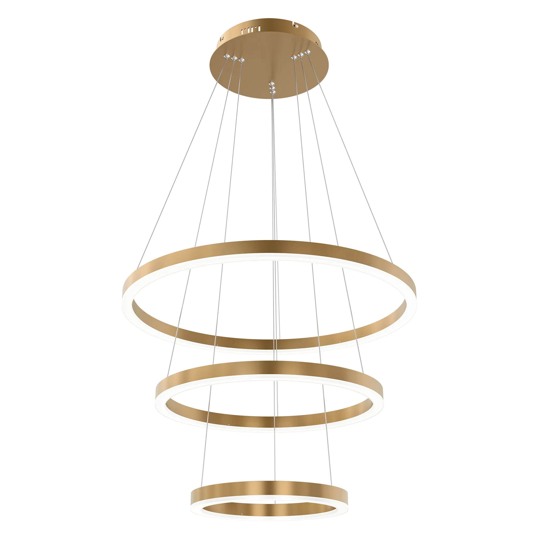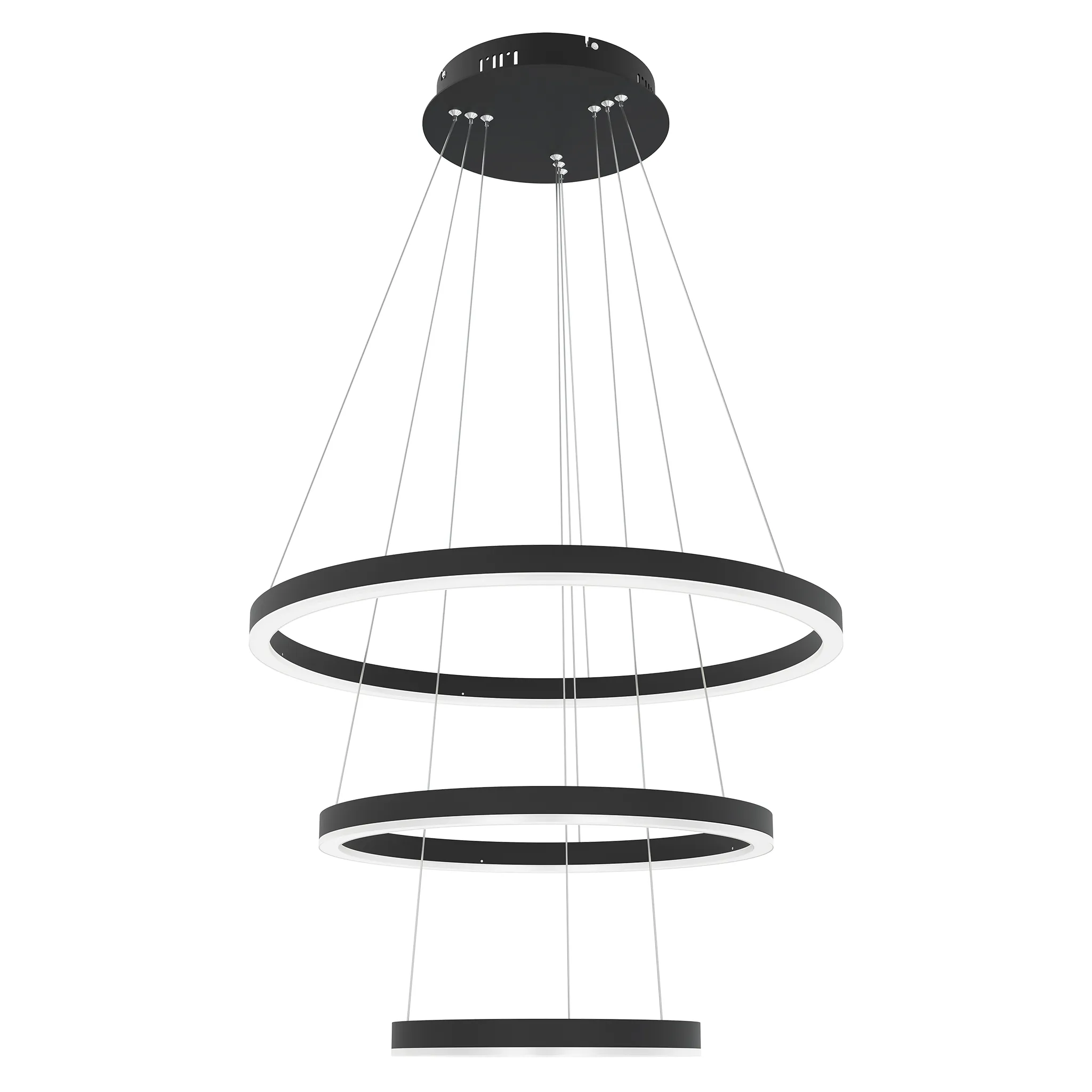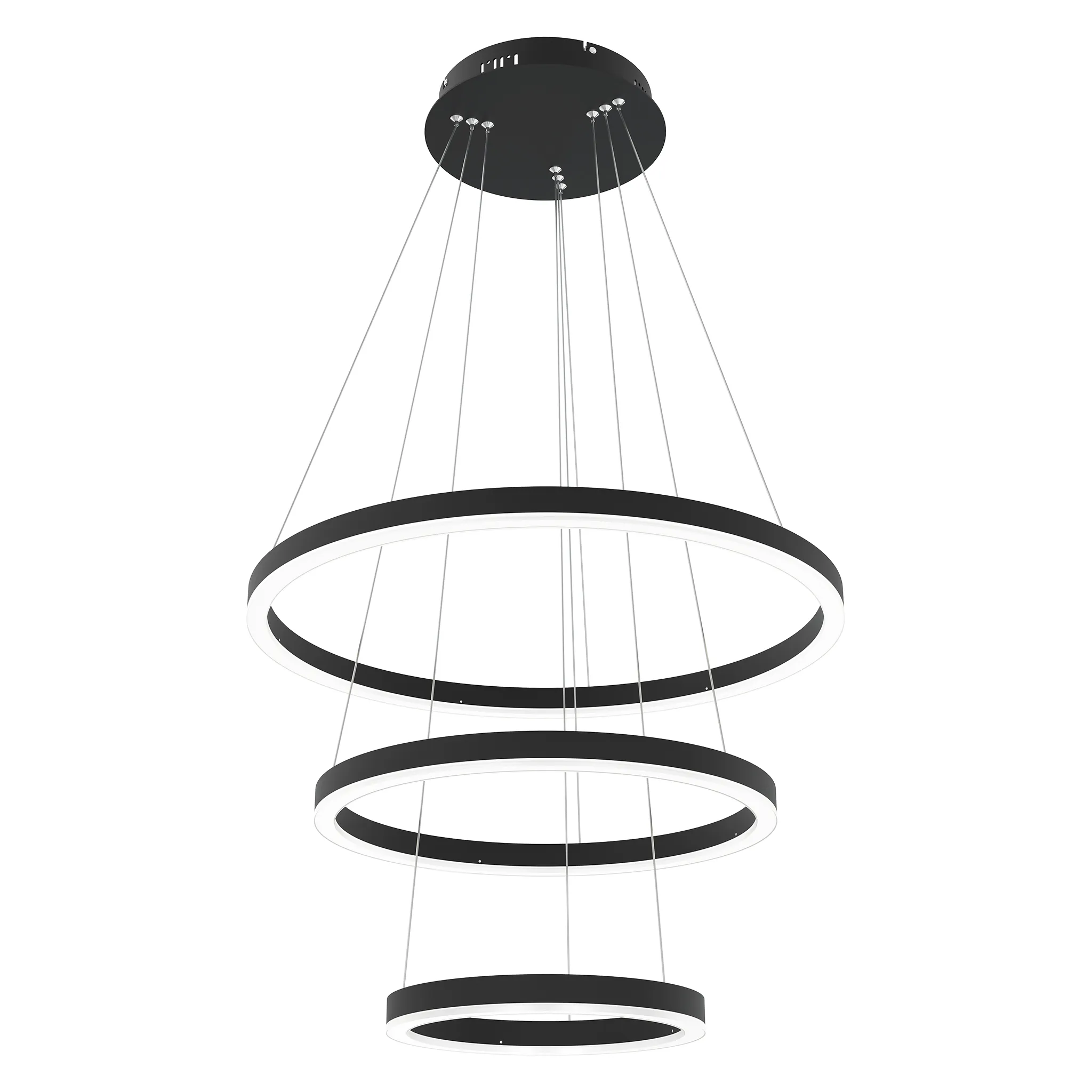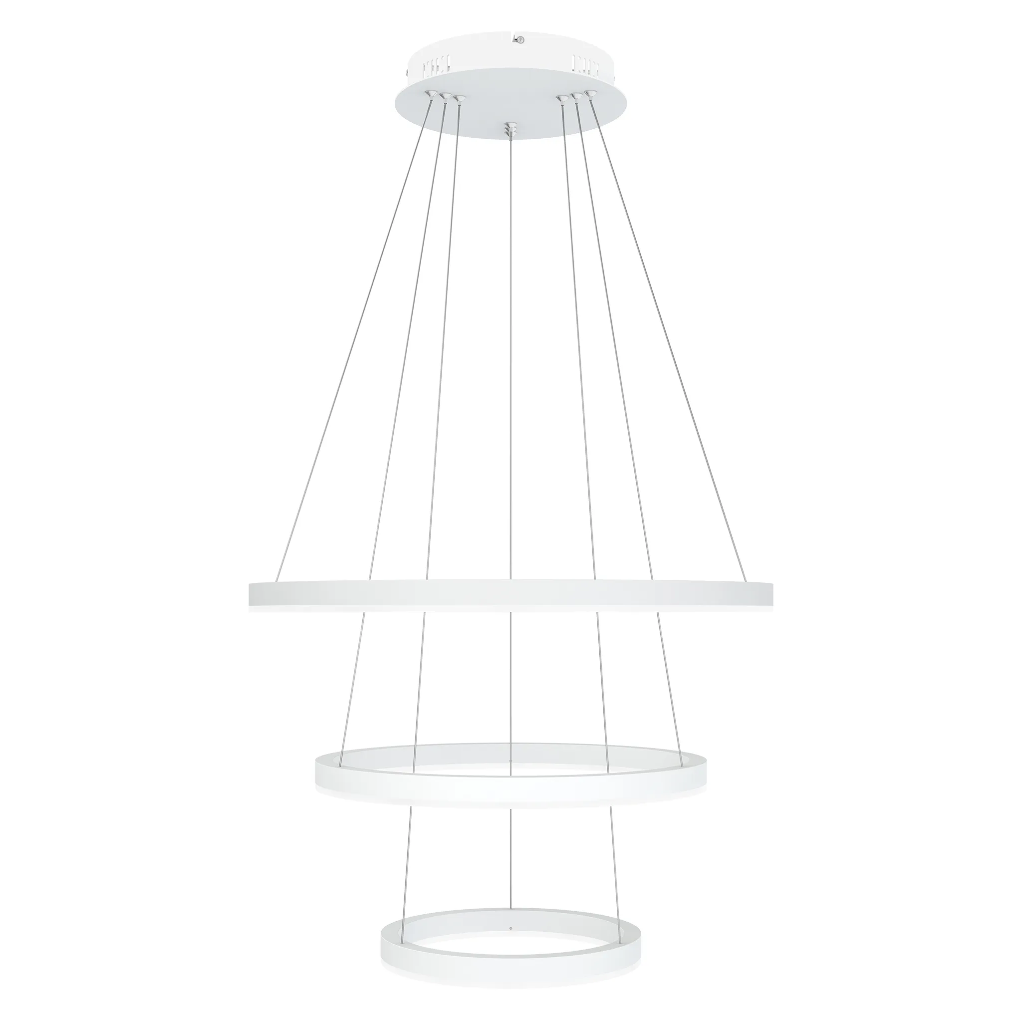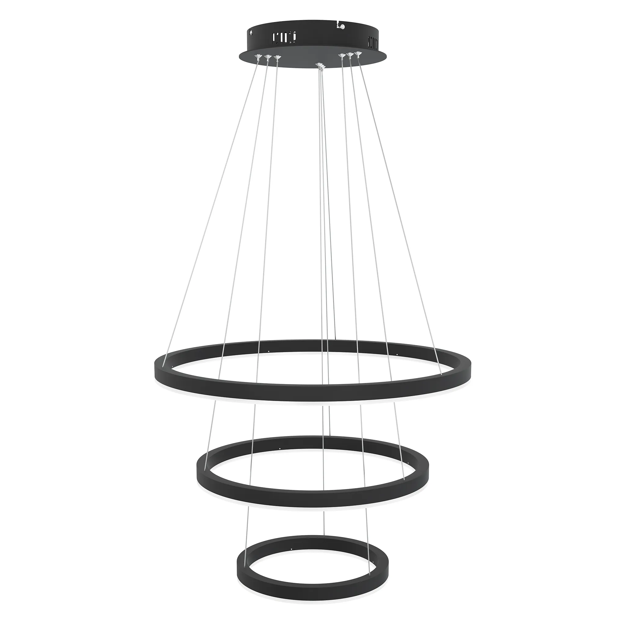 The ceiling lamp Layer 3 is modern and sleek with three light circles of different sizes. The lamp is simple yet extravagant. Layer 3 fits well in public spaces but also in private homes. The round LED lamp is perfect, for example, above the conference table, in the auditorium, or at home above the dining table where the ceiling height is high. The ceiling lamp is dimmable. The height and inclination of the light rings can be adjusted.