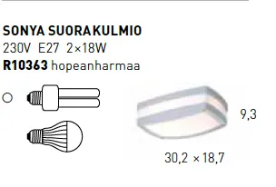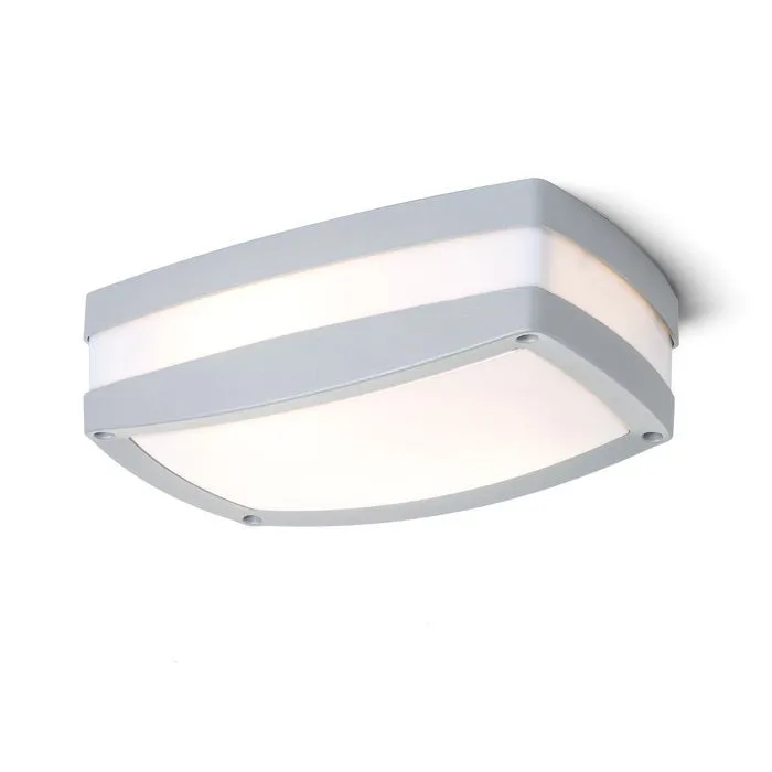 A lamp made of aluminum for outdoor use. The lamp has an opal-like shade made of polycarbonate. The lamp can be mounted on the ceiling or on the wall.