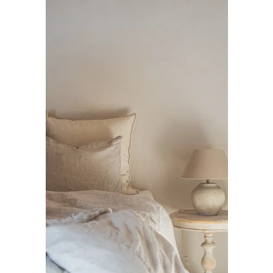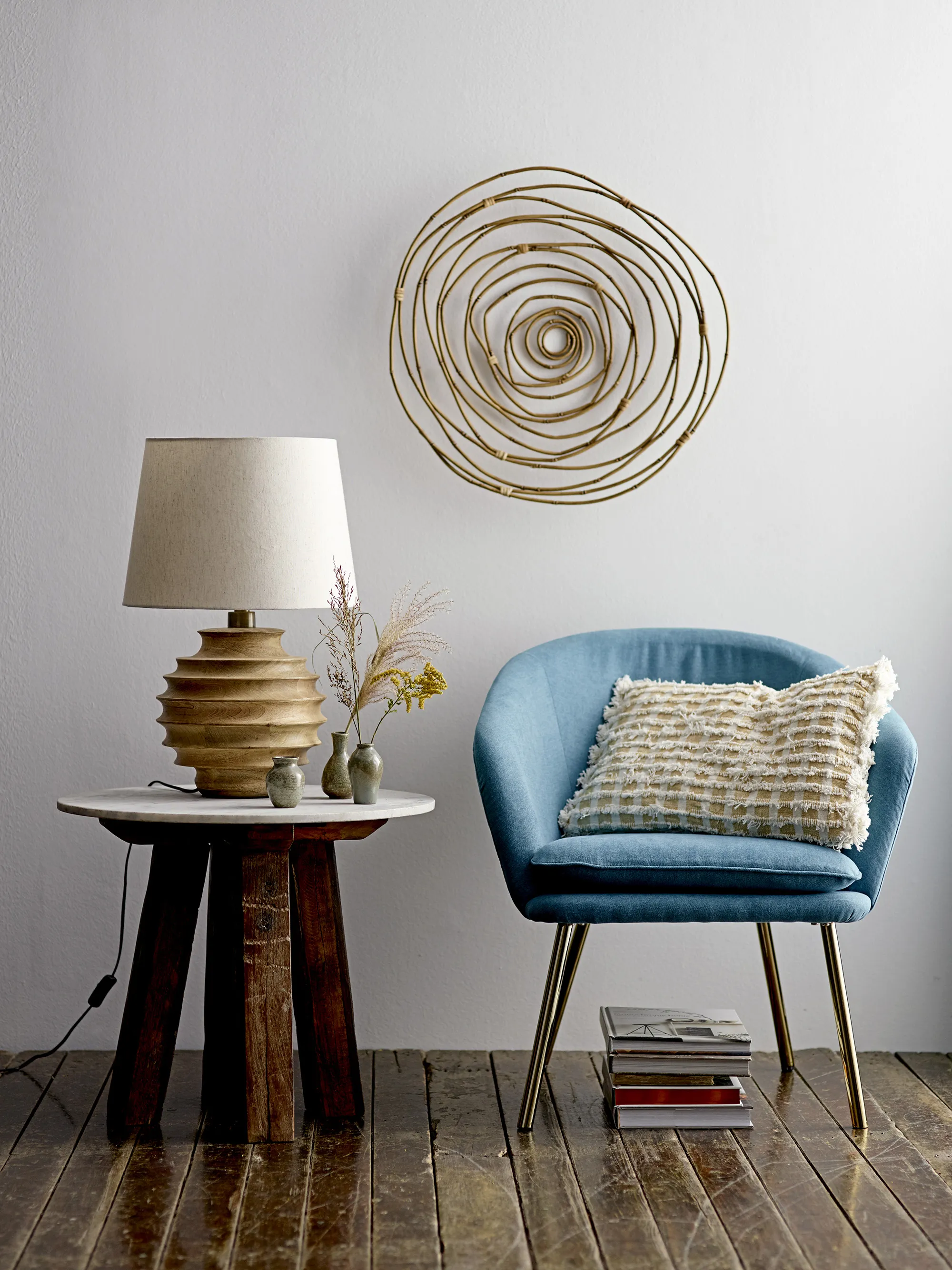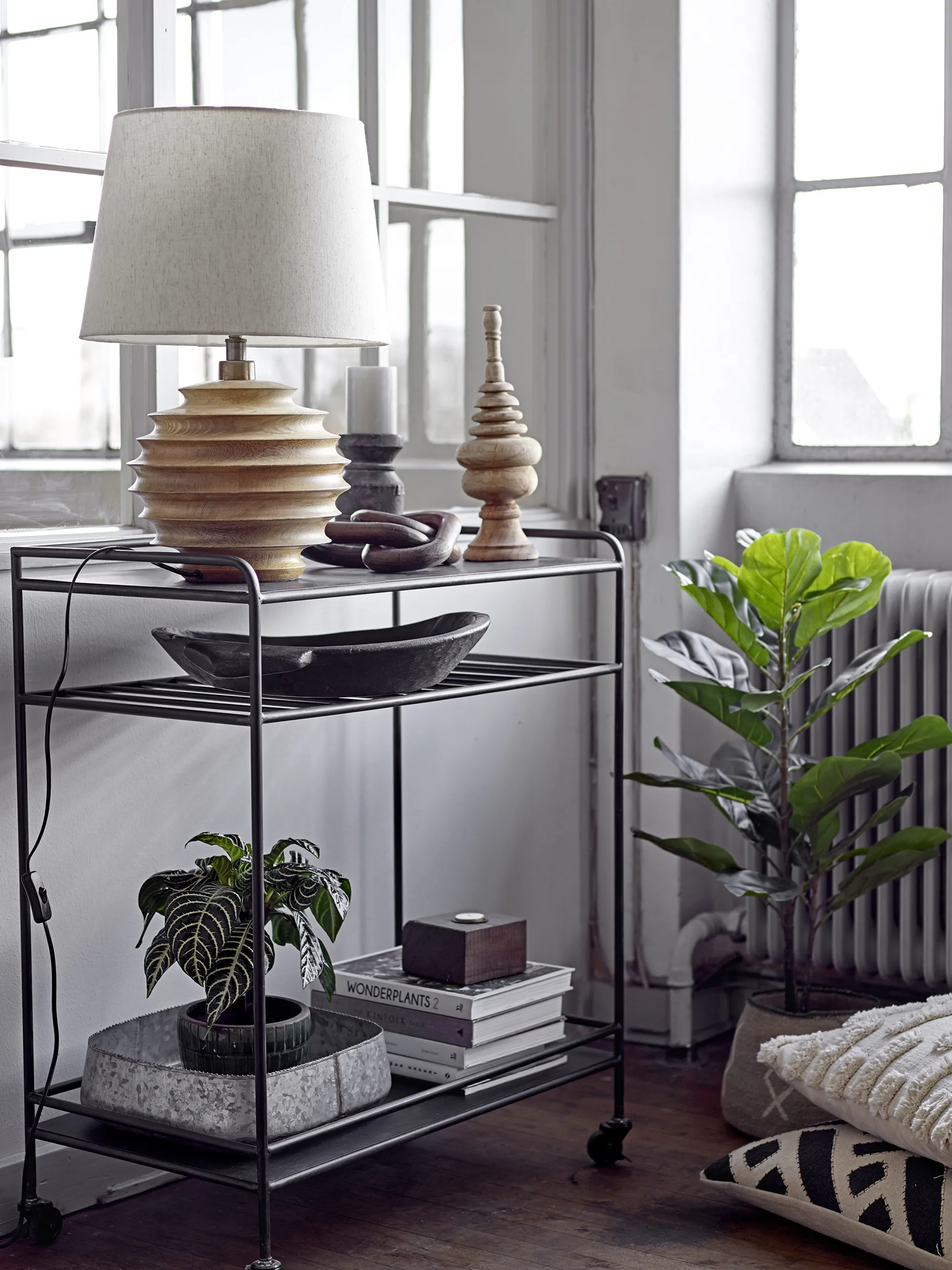 The table lamp Svale is like a piece of art with its carved wooden base. Place the lamp on the living room shelf to light up a dark corner, or use it on a side table for cozy lighting.