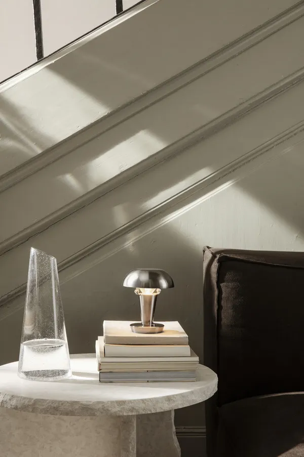 The Tiny table lamp from Ferm Living is simple yet elegant with both rounded and more angular shapes. The shade can be angled to direct the light. Perfect for the windowsill! Available in two sizes.