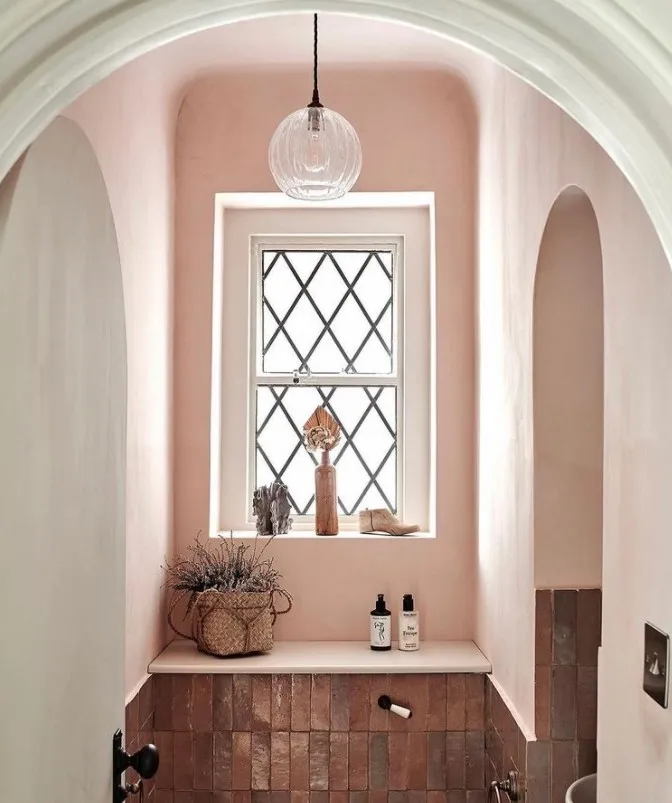 Kalklitir Roseto is an ecological Icelandic lime paint with natural minerals and pigments. The lime paint provides a vibrant, 100 percent matte finish with a concrete feel. The paint is breathable and odorless. Roseto is a light pink color.