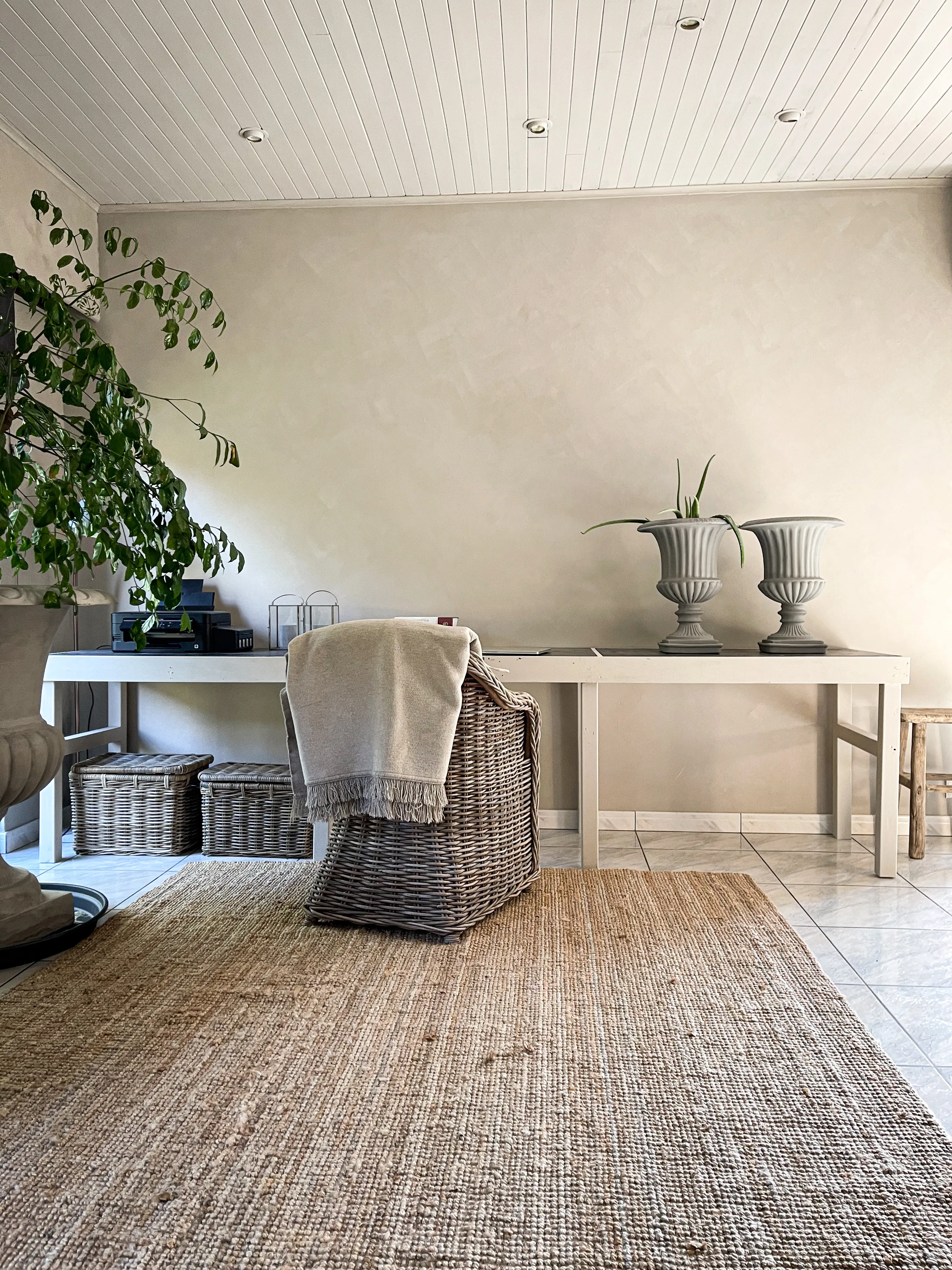 Kalklitir Sabbia Secco is an ecological Icelandic lime paint with natural minerals and pigments. The lime paint provides a vibrant, 100 percent matte surface with a concrete feel. The paint breathes and is odorless. Sabbia Secco is a beige color reminiscent of linen.