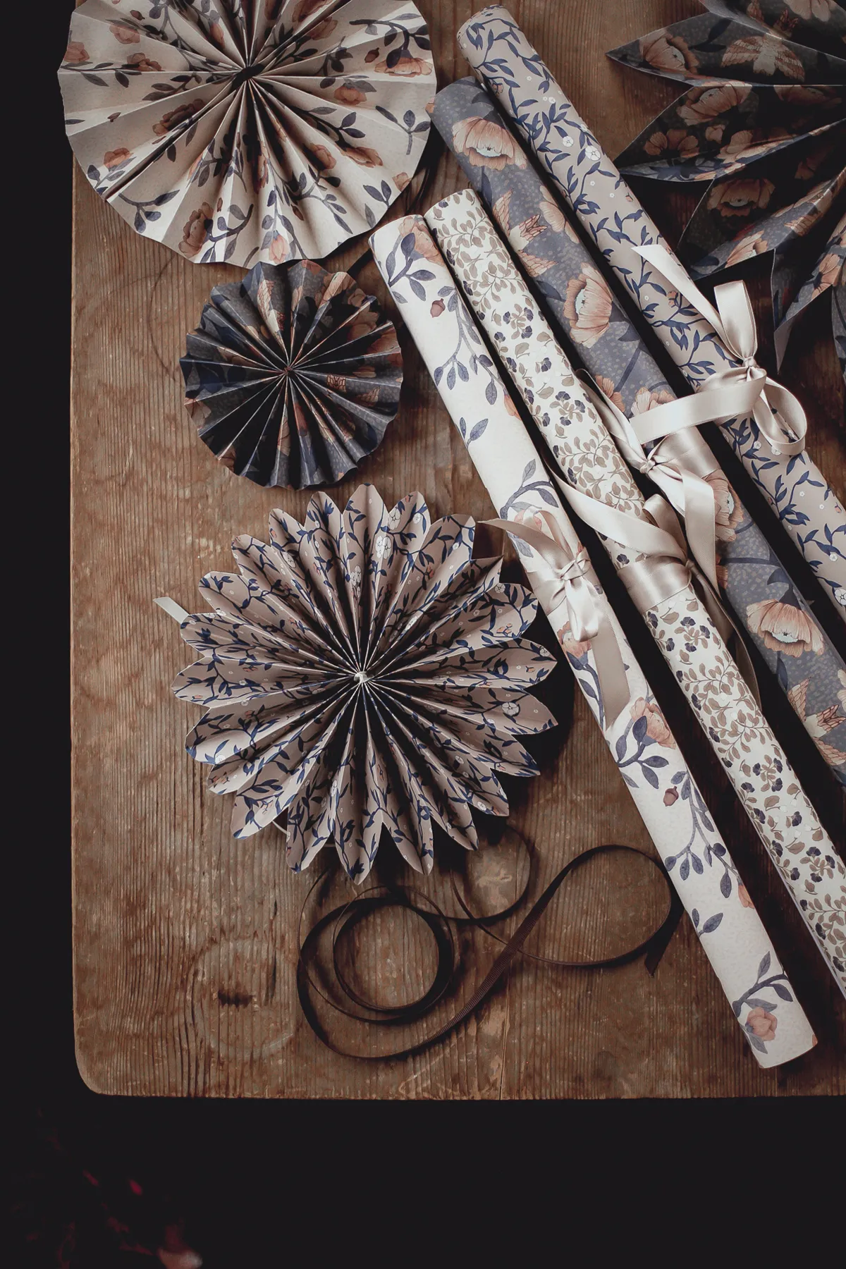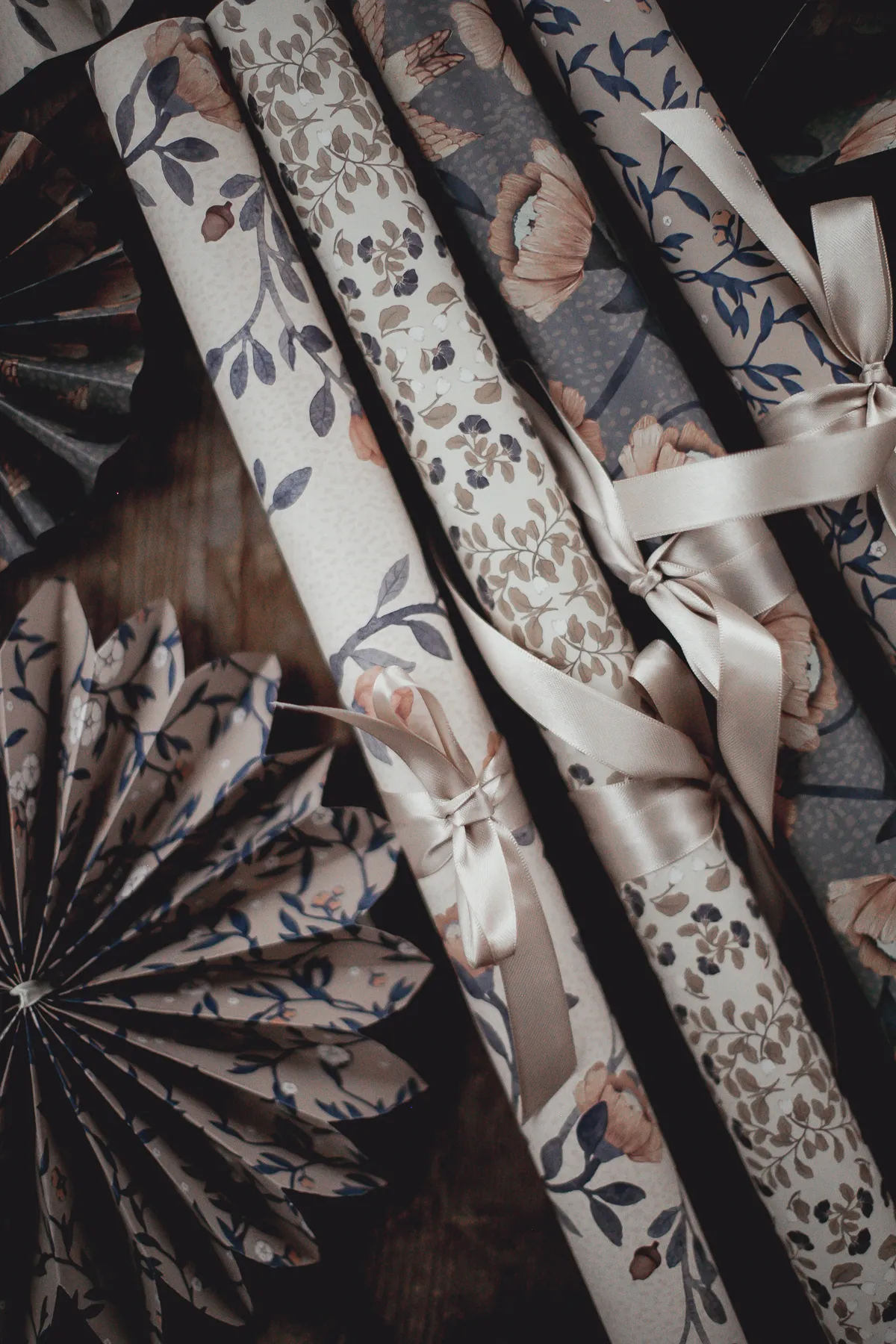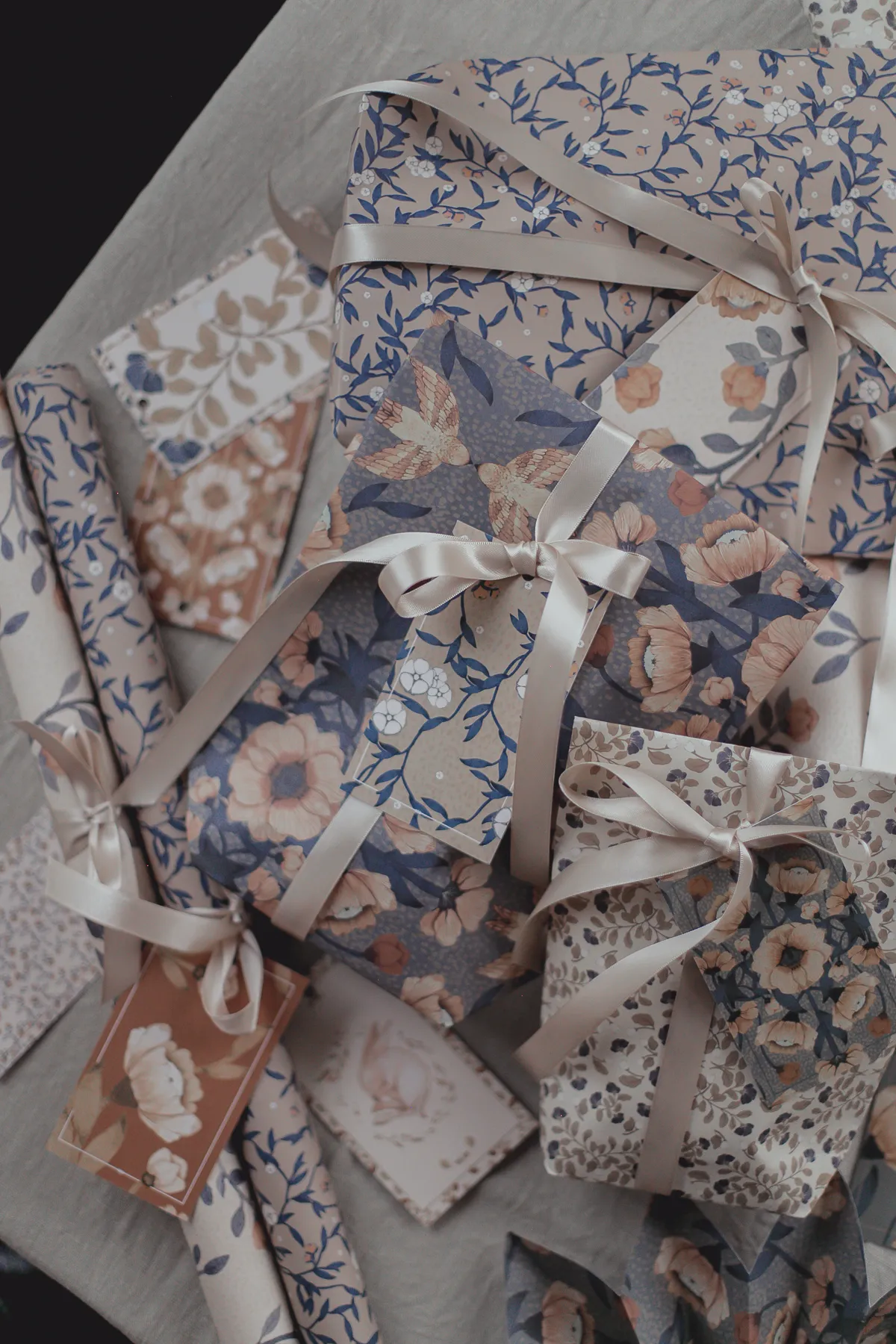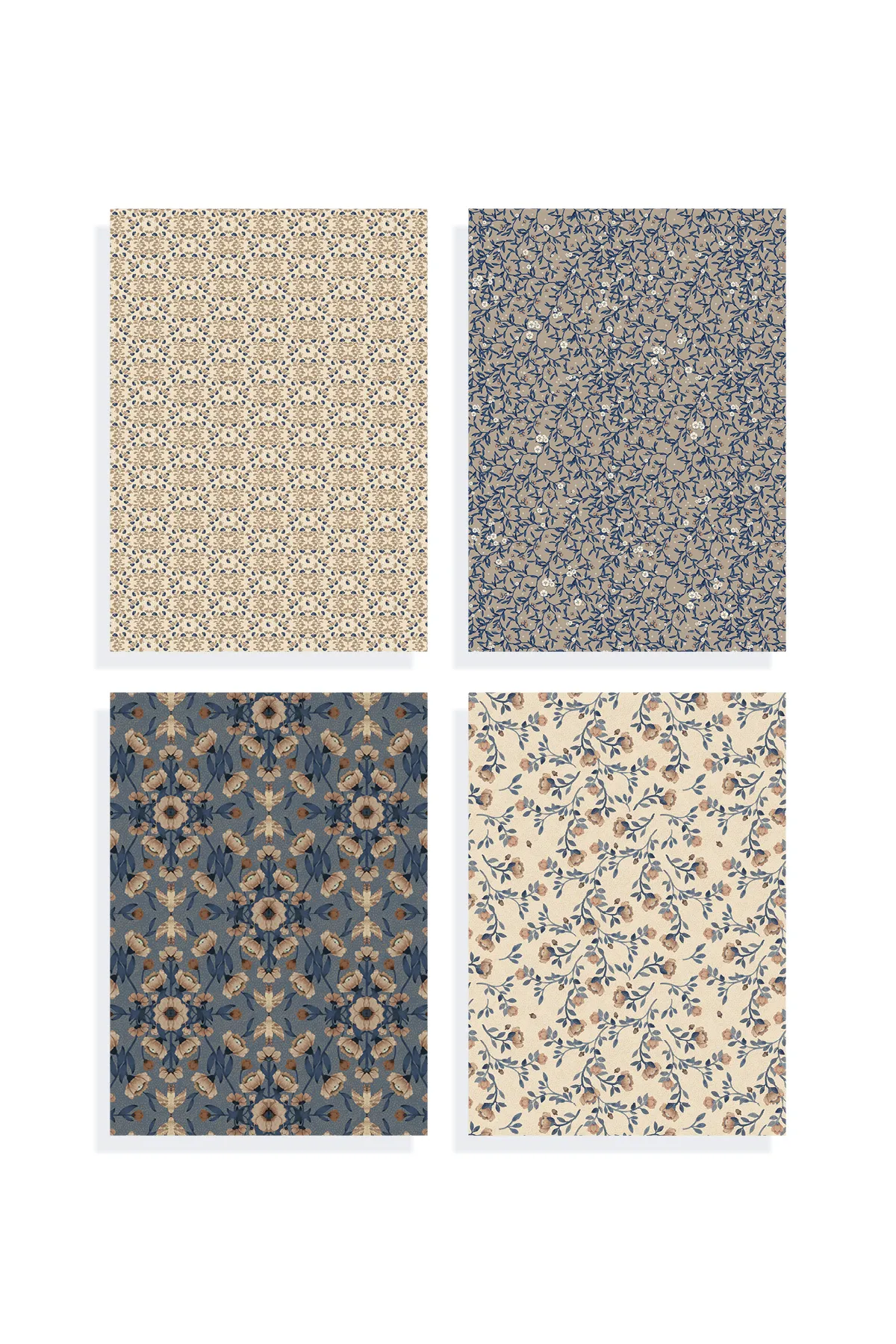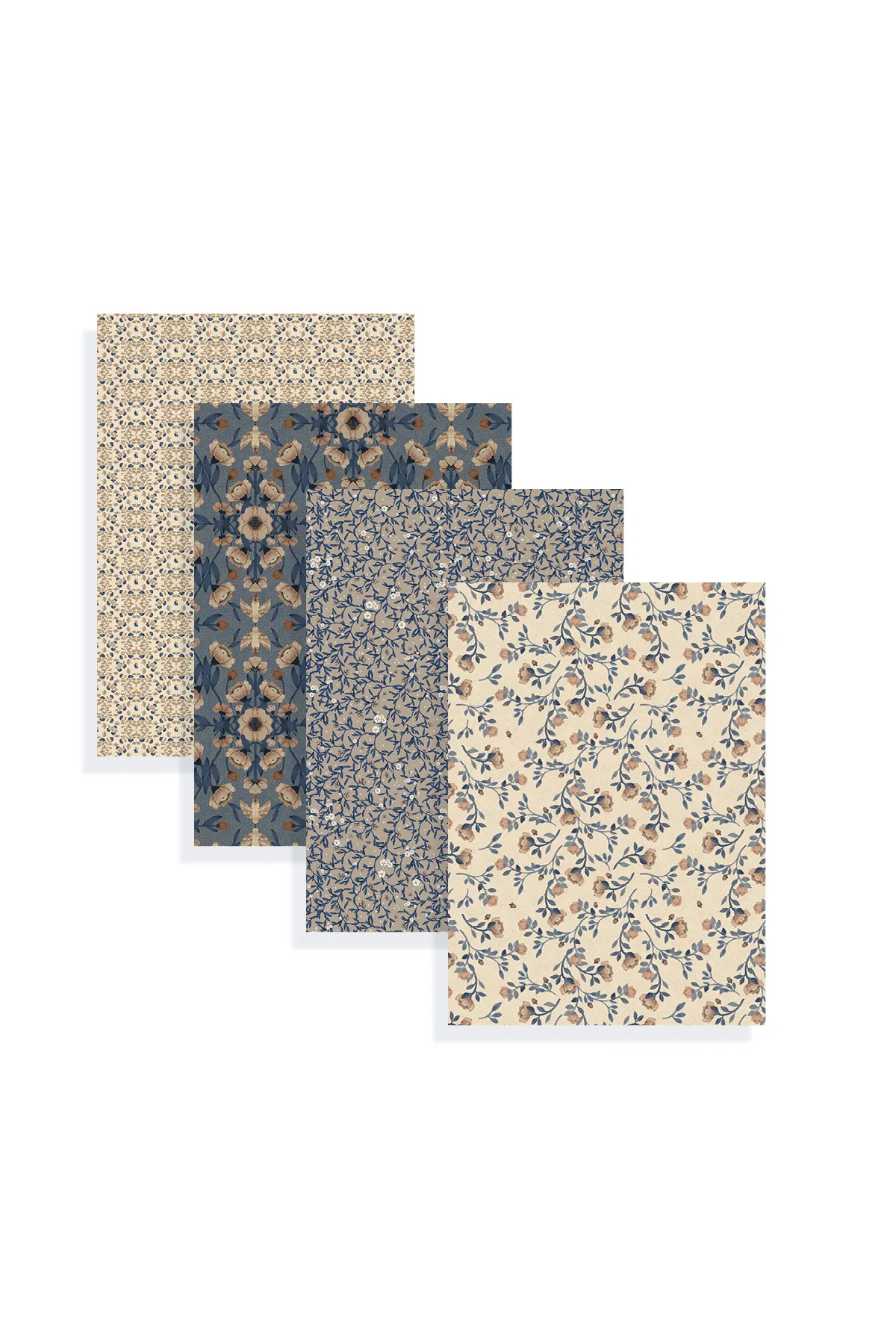 Mrs Mighetto's beautiful gift wrapping paper Blue Florals is perfect for wrapping Christmas gifts, birthday presents, and other gifts. The gift wrapping sheets have four different patterns in blue with hints of red, rusty, and beige colors.