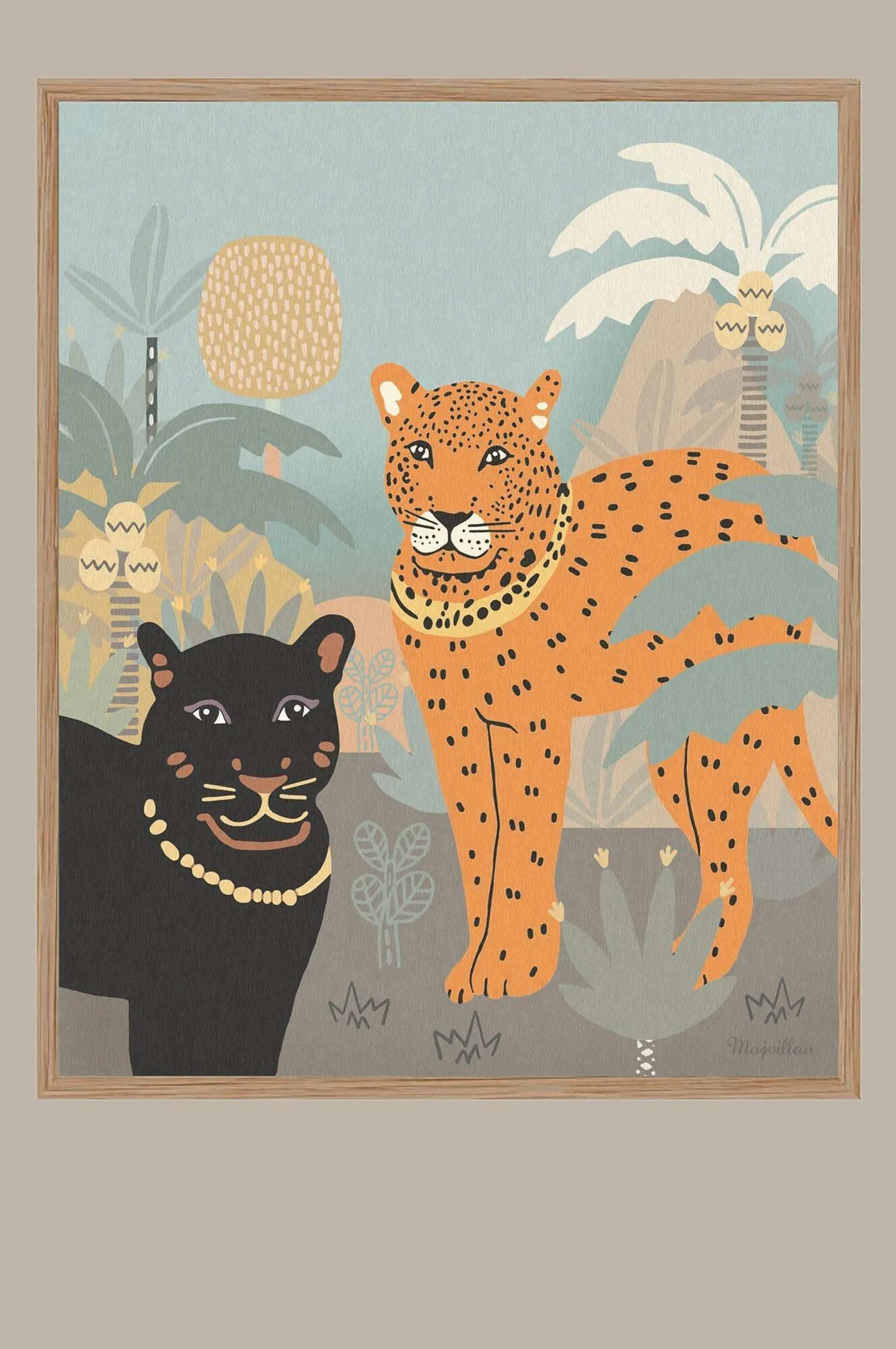 The Black Panther poster by Majvillan, featuring two bold jungle animals, is the perfect finishing touch for the children's room. A tough but kind poster.