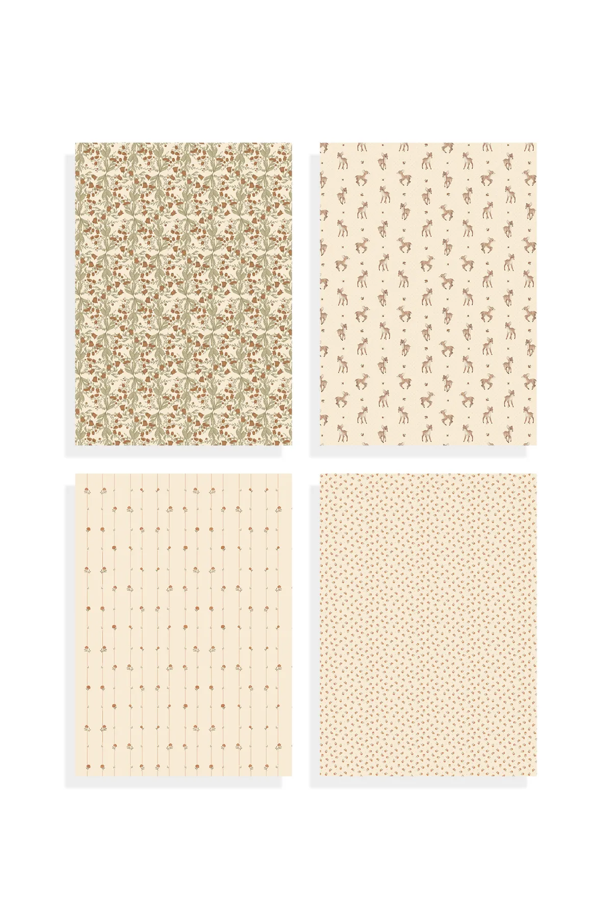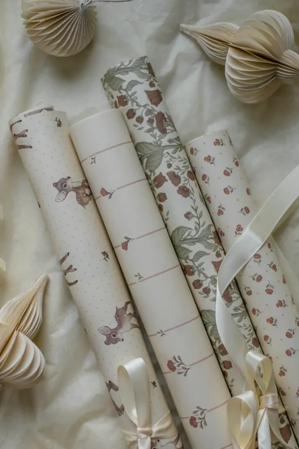 Mrs. Mighetto's cute gift wrapping paper Rusty Red is perfect for wrapping Christmas presents, birthday presents, and other gifts. The gift wrapping sheets have four different designs in rusty red tones.