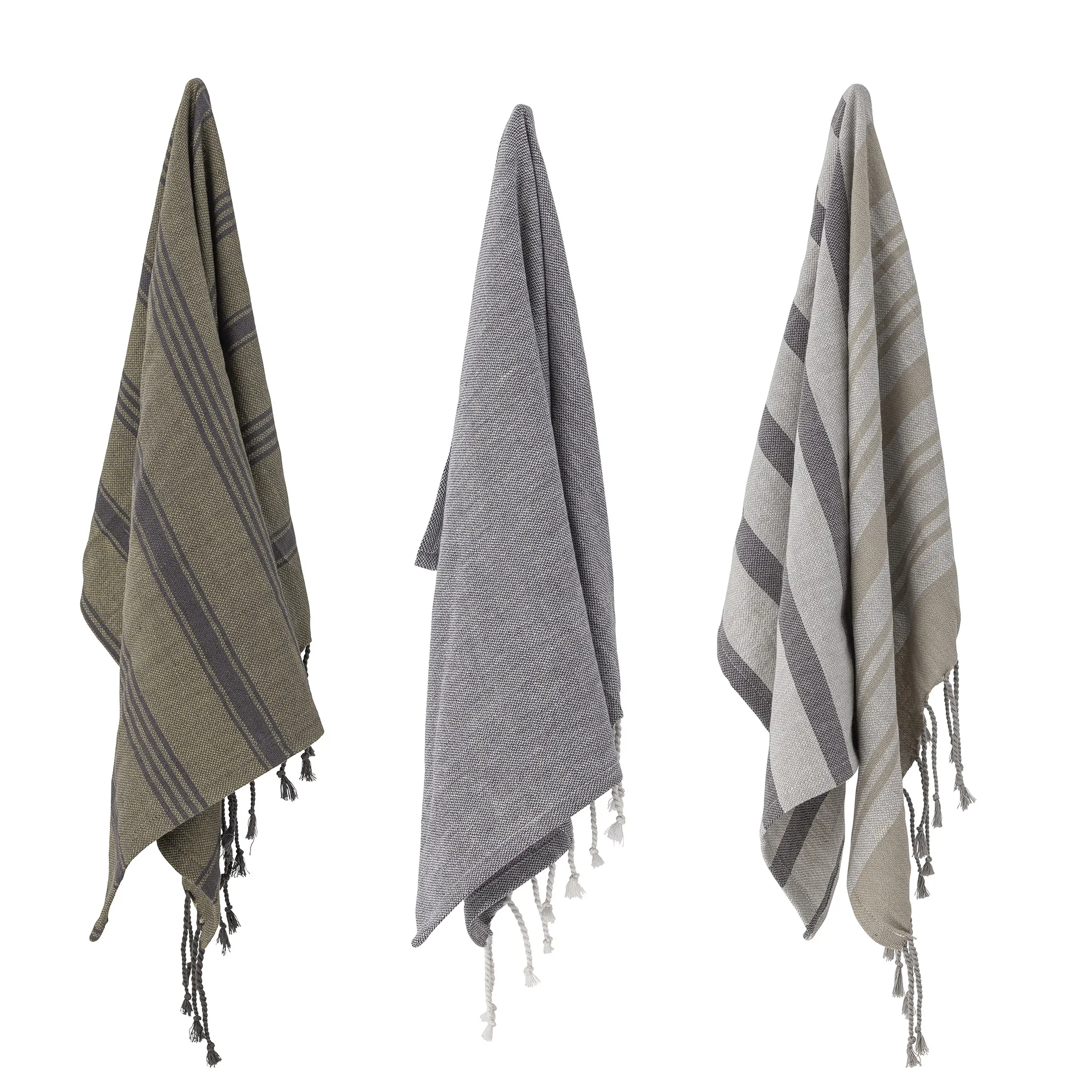 The Mara Kitchen Towel comes in a three-pack with two different striped ones and one solid gray. The kitchen towel, made of 100% cotton, is practical and stylish, and does not need to be hidden away.
