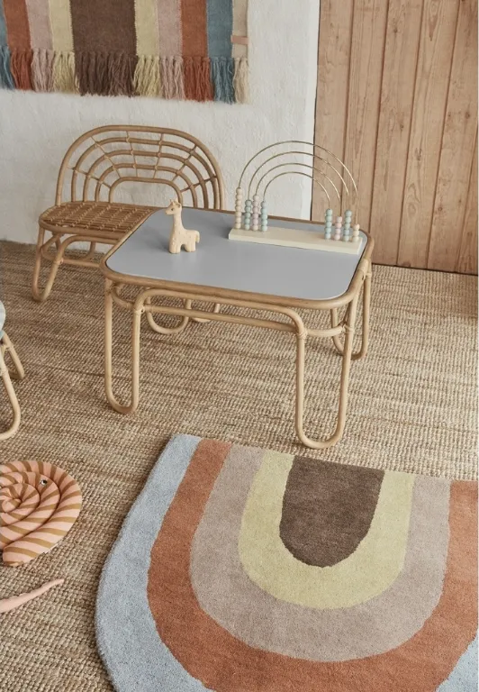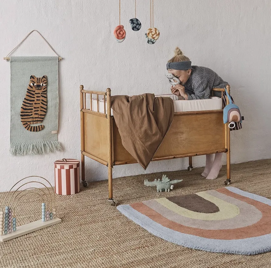 OYOY's Rainbow rug is perfect for the playroom. The rug is wonderfully soft and fun to sit on or play with.