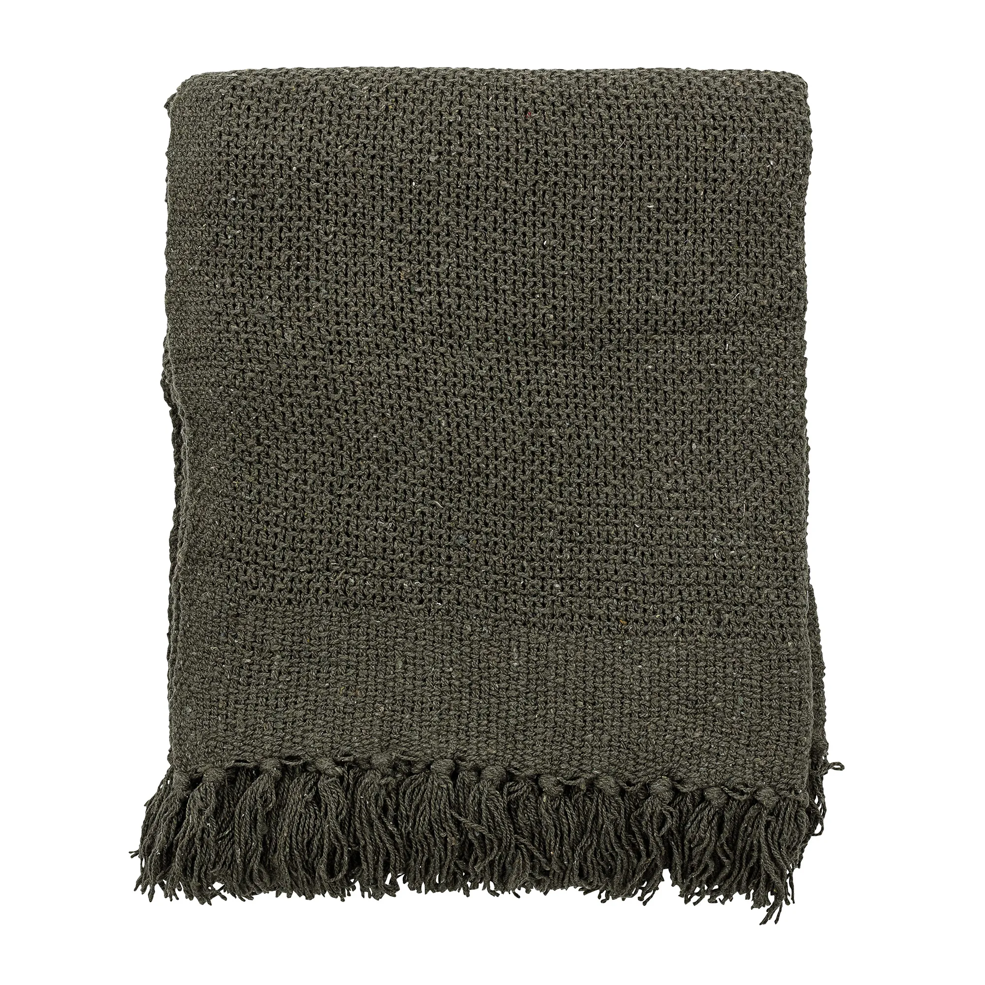 The solid-colored Rocko Throw blanket in green is soft and cozy. The blanket is made from recycled cotton. A nice blanket for the living room sofa, bed, or balcony.