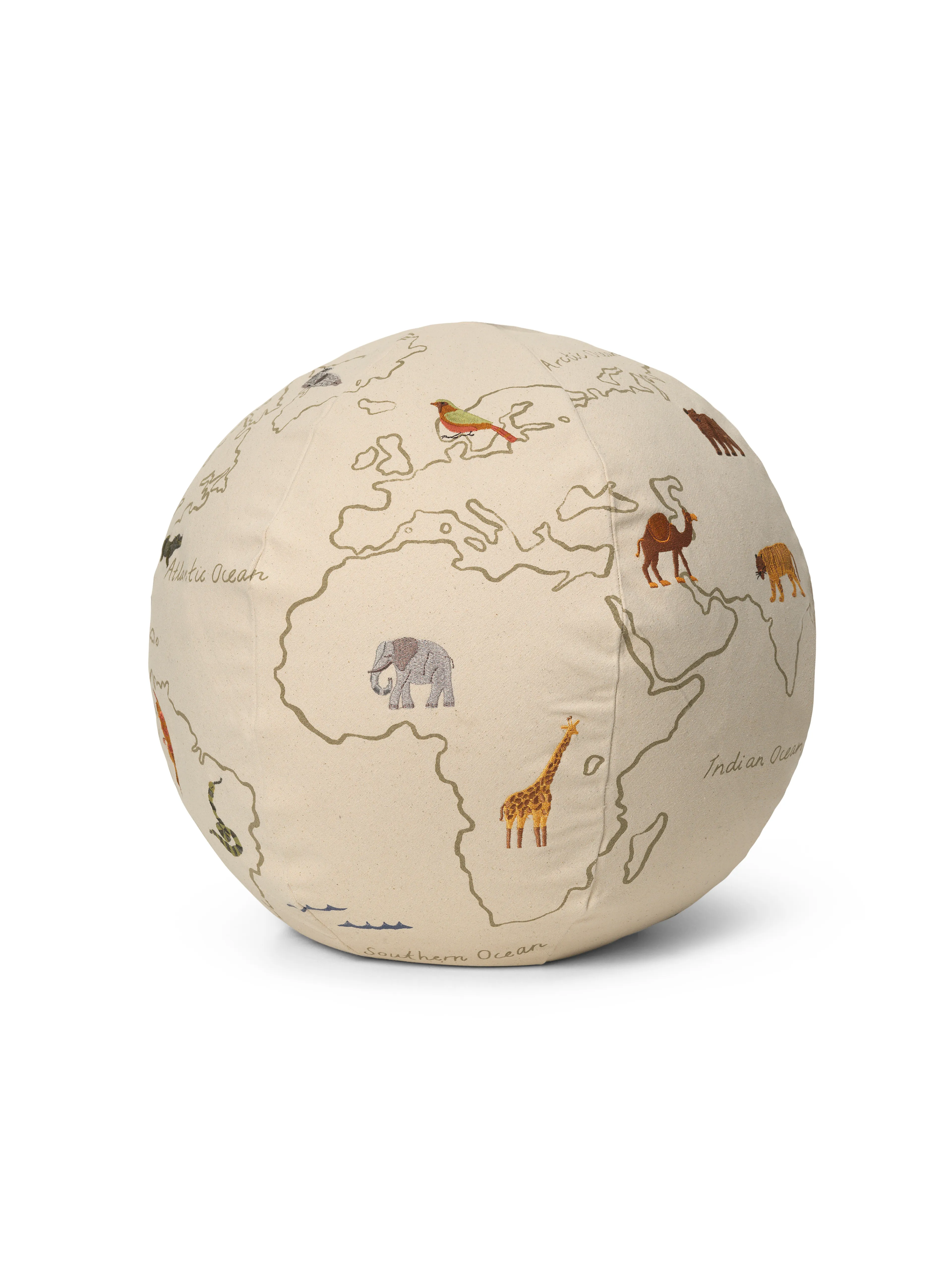 The Danish brand Ferm Living's The World Pouf is a fun and practical seat in the children's room. Teach the child about the world's countries and animals in a fun way! Comfortable to sit on while the child plays or crafts. The animals are embroidered on the fabric.