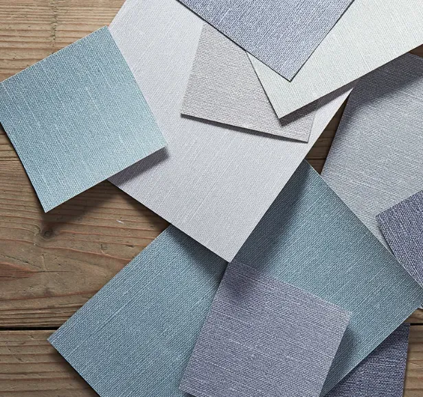 Boråstapeter's solid color wallpaper Airy Grey has a textile surface that gives the room a soft and cozy feeling. The wallpaper is light gray. It fits perfectly with several different interior styles.