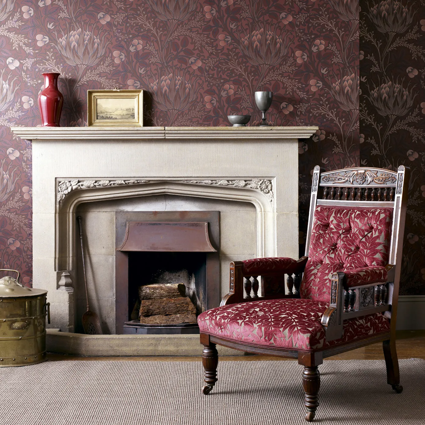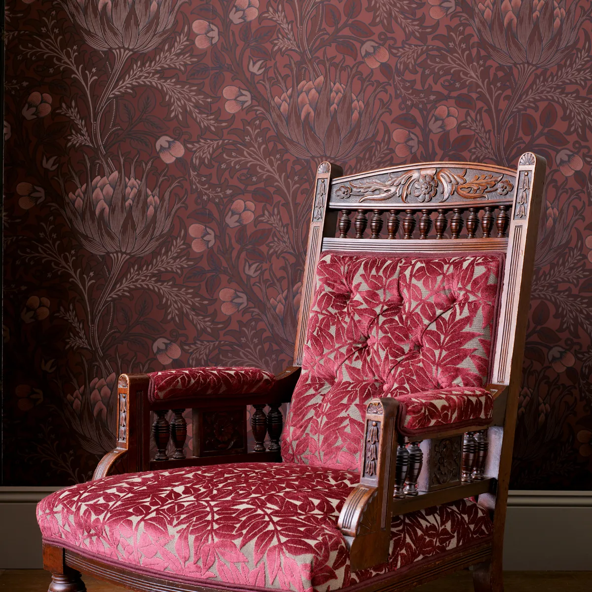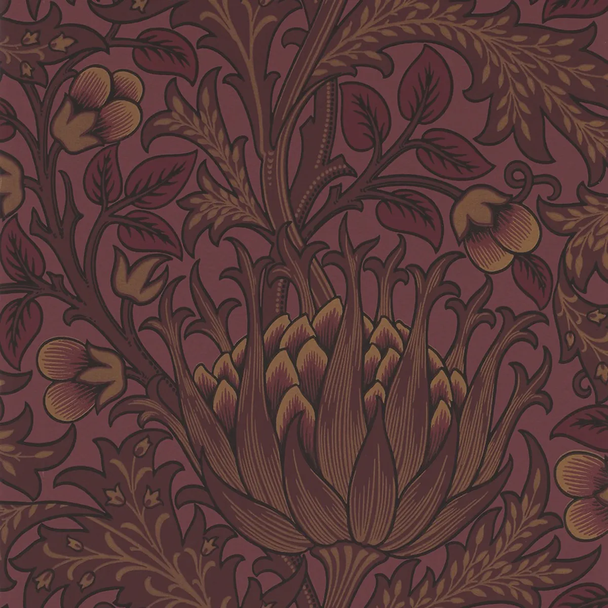 The Artichoke wallpaper from Morris with large artichokes is classic and densely patterned. The wallpaper suits both classic and modern homes.