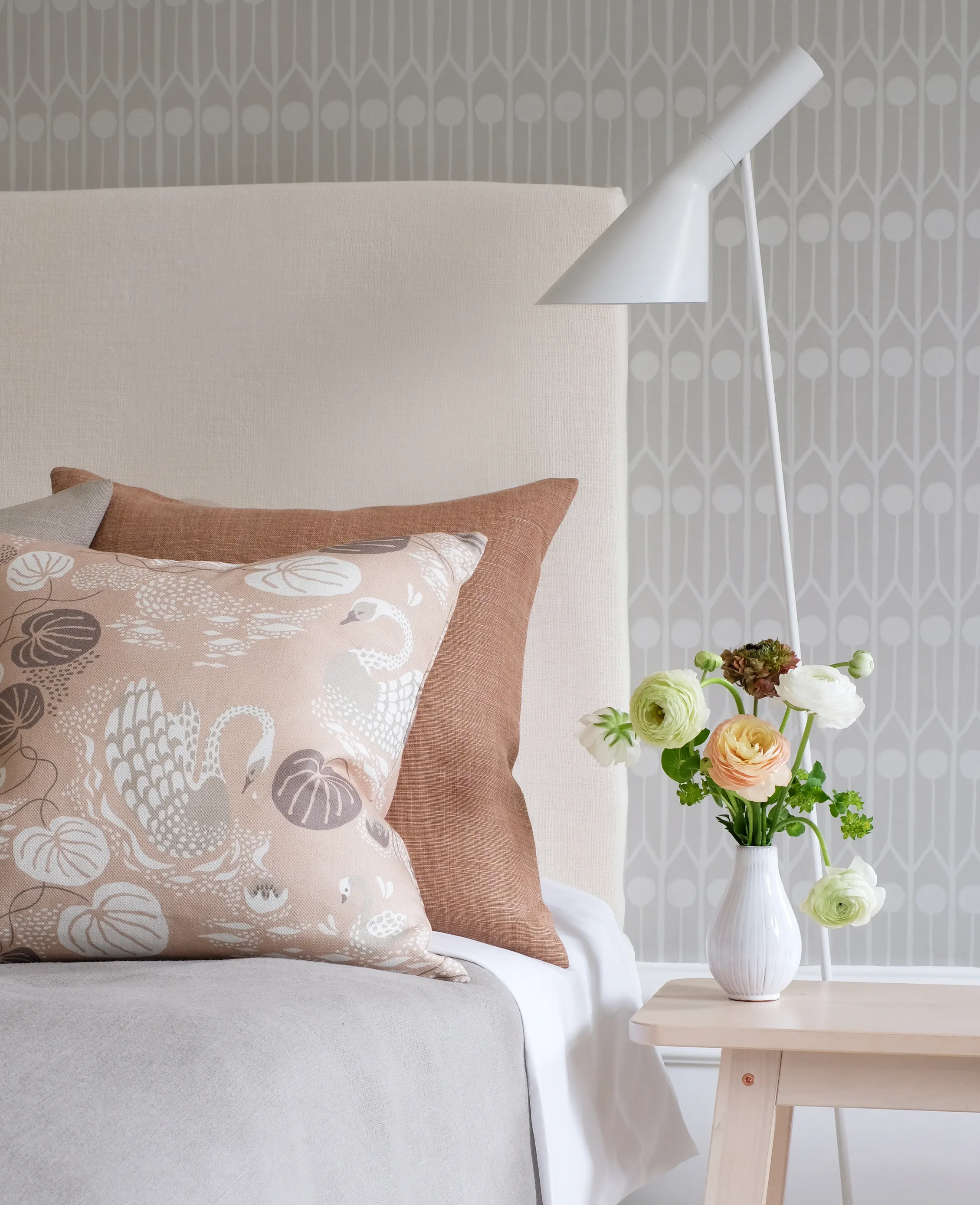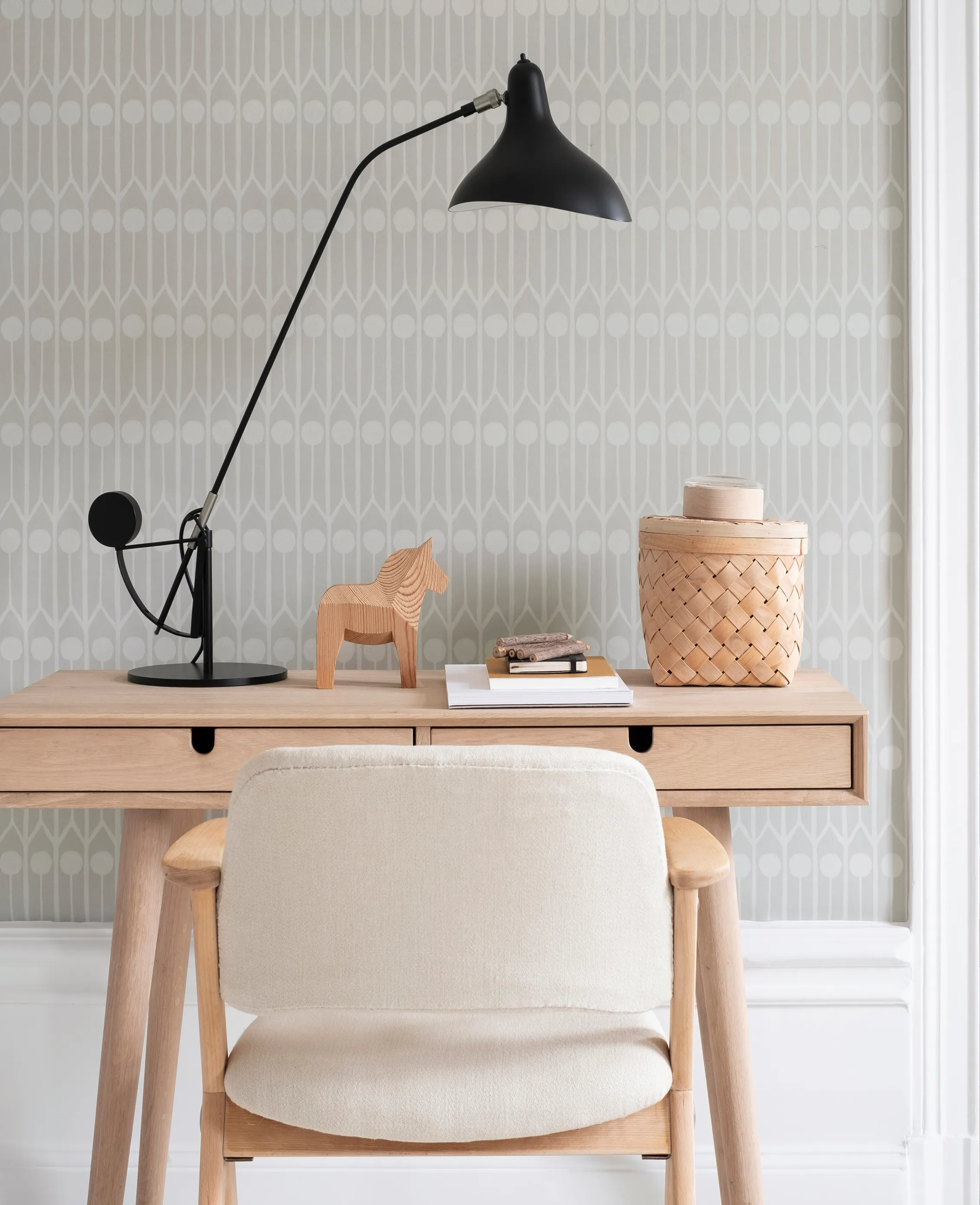 Littlephants wallpaper Feathers is graphic and calm. The wallpaper is designed by Camilla Lundsten. A nice wallpaper for the living room, bedroom, or children's room.